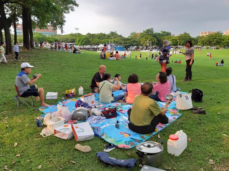 8月3日這天下午,市府安排音樂會,市集街頭藝人表演,還特別舉辦野餐布置競賽等活動,吸引許多民眾攜家帶眷,呼朋引伴前來參加,民眾任意選個喜歡的角落,鋪上野餐墊,將帶來的物品布置一下,逛逛市集或自備炊具煮東西,大夥一起坐下聊天吃東西聽音樂,許多人在草地上或放風箏或玩飛盤或玩吹泡泡球,不亦樂乎,小孩在草地上隨意奔跑,清風吹拂,輕鬆愜意,快樂溫馨。