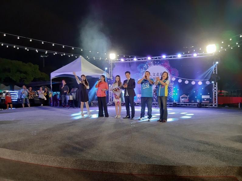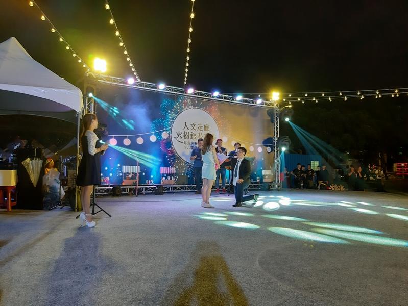 晚間充滿創意攤位的火樹銀花市集,正式開幕了,許多雲林的樂團與雲林迴青也前來表演,在節目進行中,還見證了雲林迴青的愛情喜劇,有位大裕農場迴青,特意選在今天這個值得紀念的日子,在星空下的舞台上,向女朋友求婚,在各界長官與眾人的見證祝福下完成求婚儀式,浪漫溫馨。