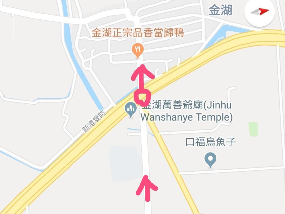 上方箭頭是金湖橋下往金湖街道拍攝,再過3天左右金湖街上也會有懸日,街頭的盡頭是龍台宮加懸日和兩旁的街道,拍起來應該會很不錯看。