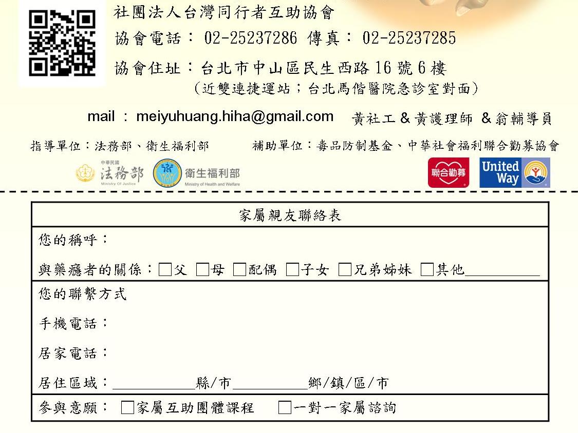 今天的家屬團體,一位母親帶著她這兩個月來的心情來分享,為了更瞭解兒子的情況,她甚至到監所裡當志工,並在放棄繼續改變別人的錯後,決定回頭看自己,她說:「改變不了別人,我總能改變自己吧!」