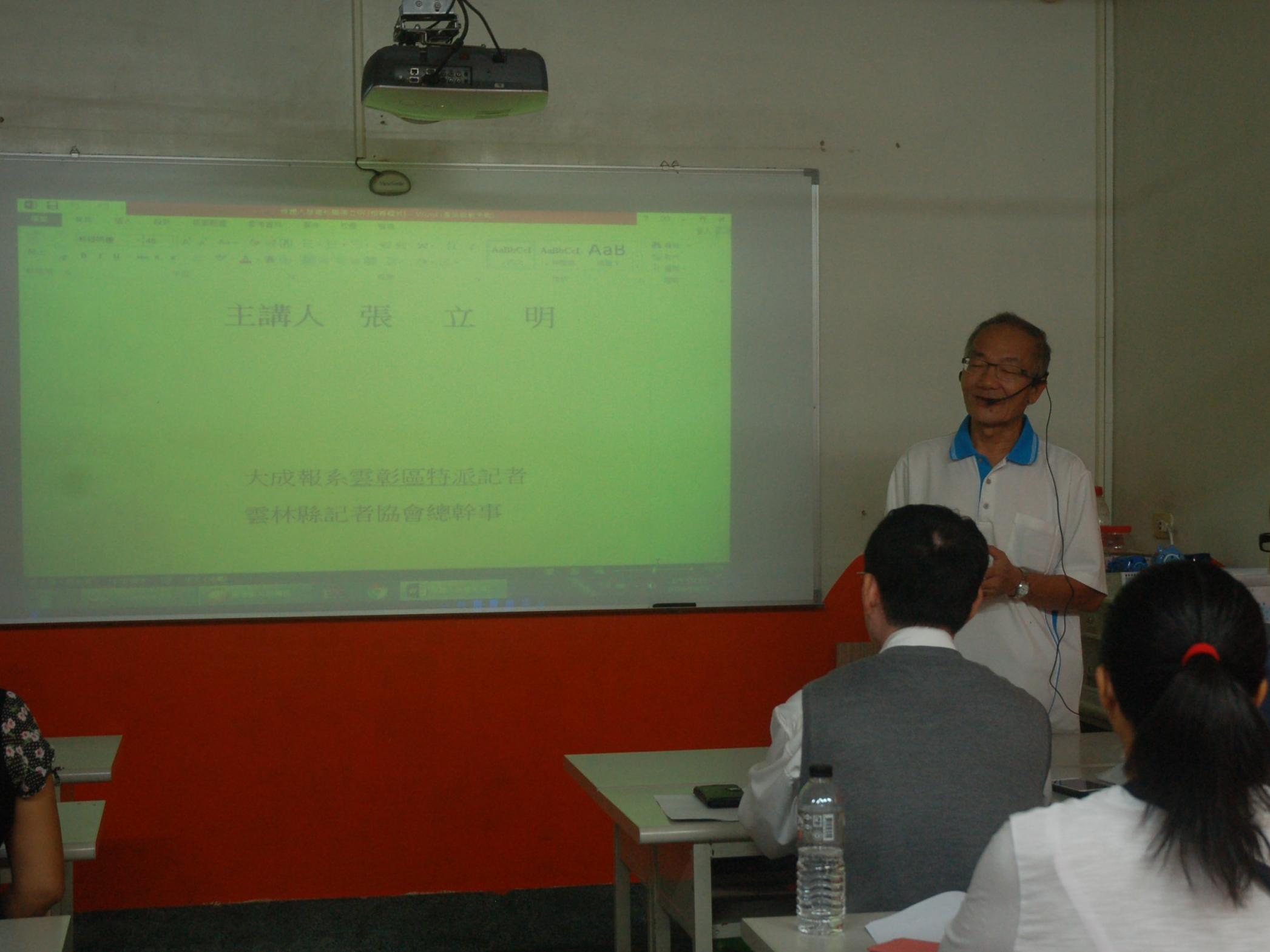 由大成報資深媒體人張立明、天眼日報網路管理處長田進江、民時新聞報特派許麗秀等生動活潑的演講,讓學員們興致勃勃提出發問,農民時報執行長徐正郎也來共襄盛舉與學員分享媒體採訪要務、攝影學技巧、電子報經營管理、新聞稿編纂實務及福祿壽洒品公司提供實務參訪,活動並獲縣府支持及台塑六輕與福祿壽洒品公司等單位讚助協辨、場面熱鬧溫馨。