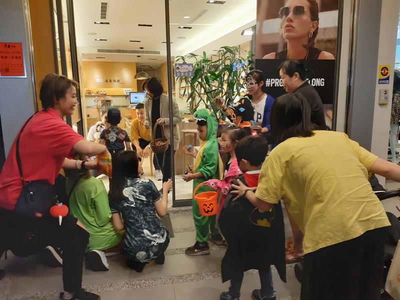 可愛的小朋友很專業的自備小水桶或小南瓜桶來店家,大玩不給糖就搗蛋
