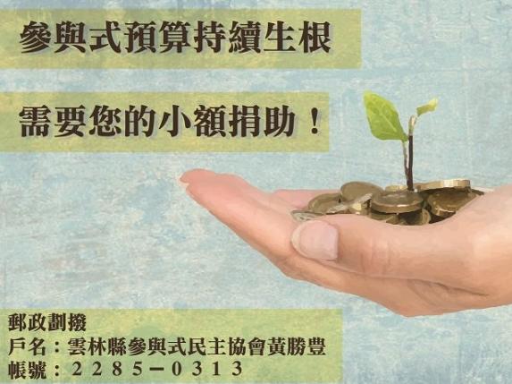 郵政劃撥 捐款帳戶:雲林縣參與式民主協會黃勝豊 2285-0313