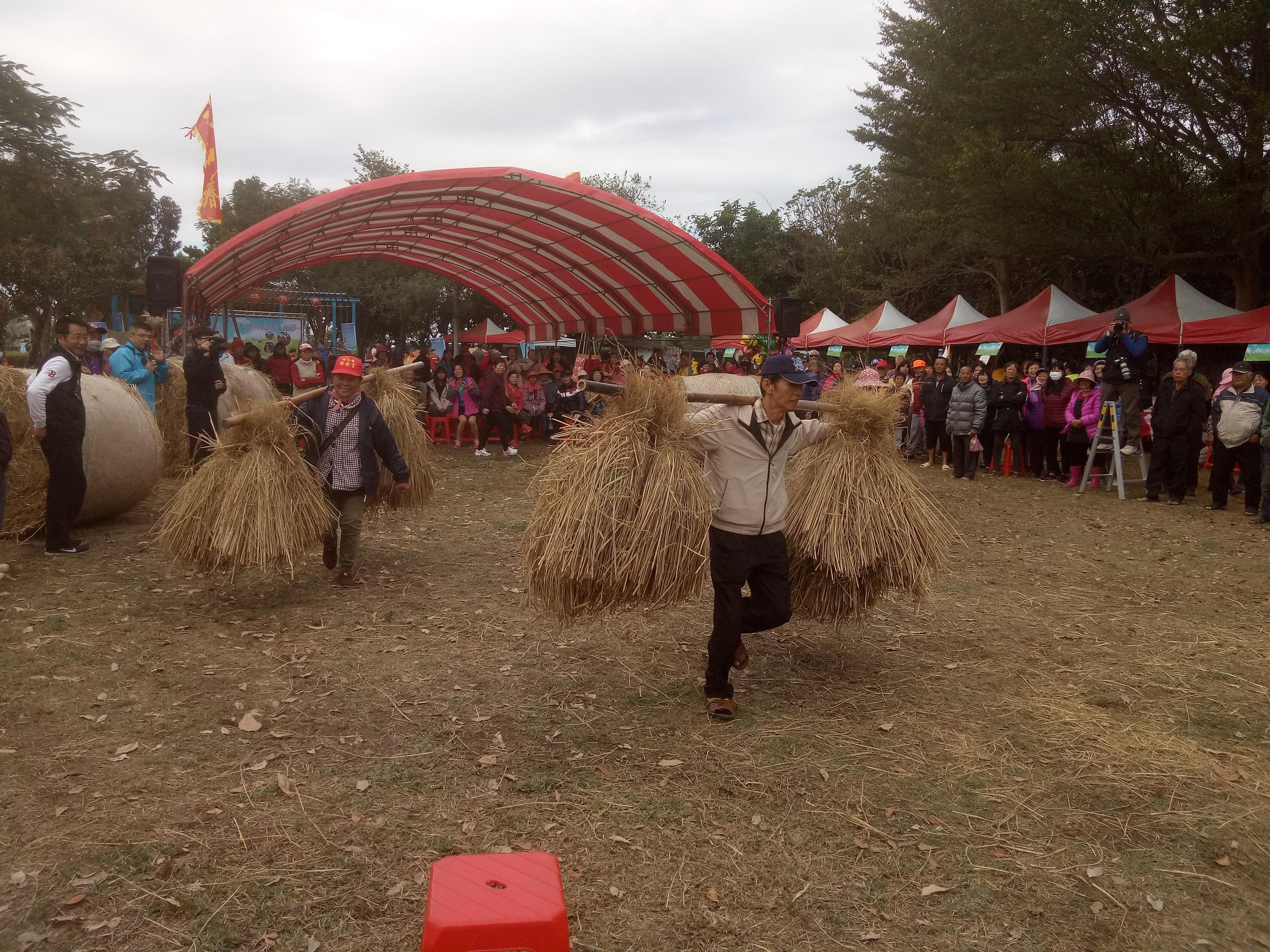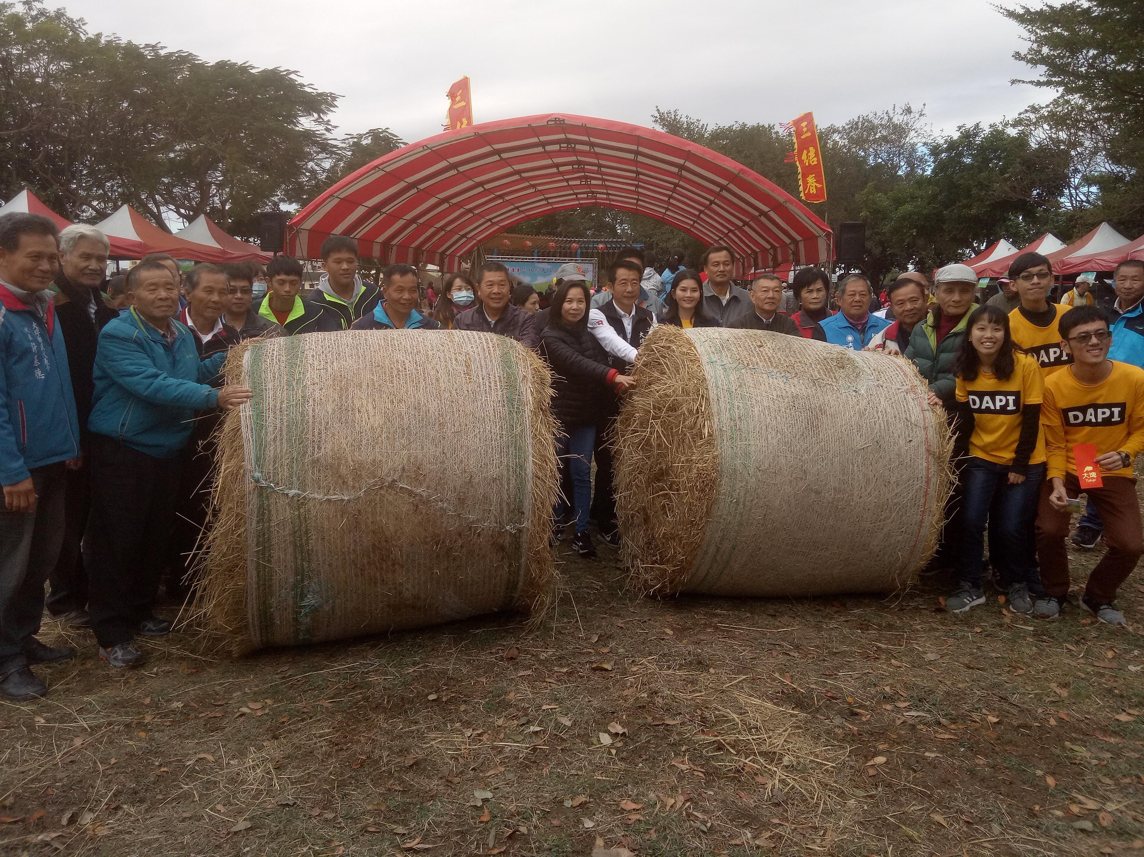 縣長張麗善、城鄉發展處長林長造、議員顏忠義、鄉長林森寶、代表會主席陳秋慶、副主席王明輝與鄉親一起體驗滾草球、擔稻草 -