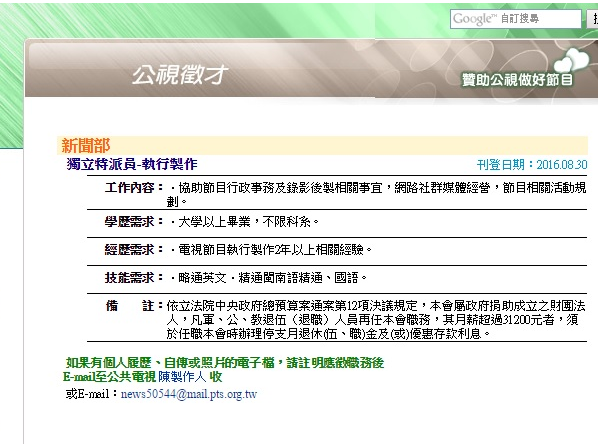公共電視徵才規定學歷也是一件很無理、落伍和歧視的行為。長年以來都是這個規定,已經建議和抗議過卻仍不改革。