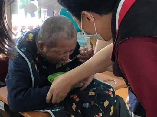 金火到了安置中心,有人細心照顧他,幫他餵飯打胰島素量血壓,飲食也比較健康,比以前血糖動不動就五百多好太多了。 -