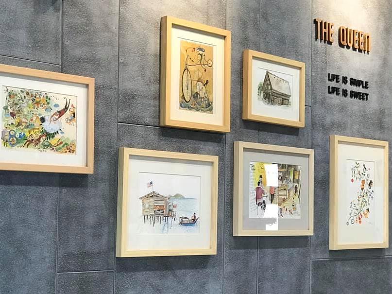 女王手作甜品店長 Lina表示,與畫家真輔為土庫同鄉,走文青風格的裝潢,很適合真輔的畫作,願意免費提供當作展示舞台,也增加店裡的藝術氣氛,同好來家裡欣賞畫作以外,同時代售真輔的明信片與繪本,歡迎來支持,讓真輔存夠旅費再次出發,帶回更多的畫作。