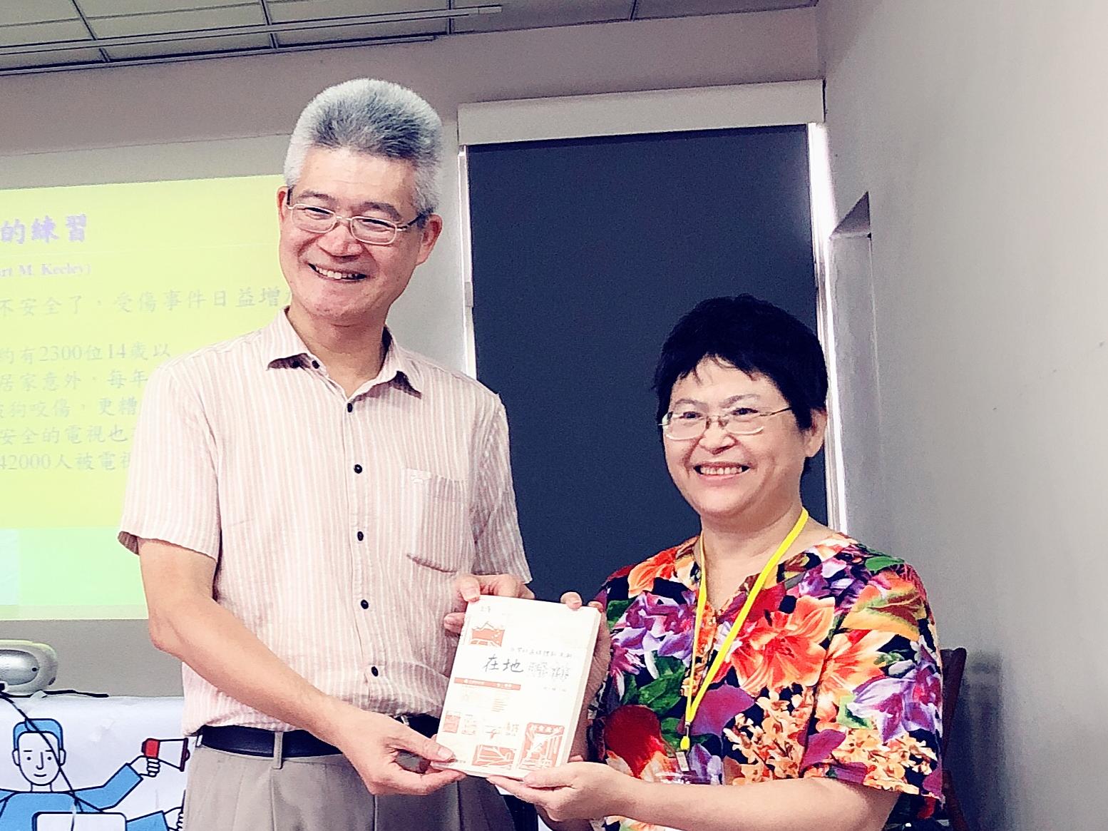 胡元輝教授(左)頒發「台灣媒體新浪潮 在地翻轉」給搶答學員