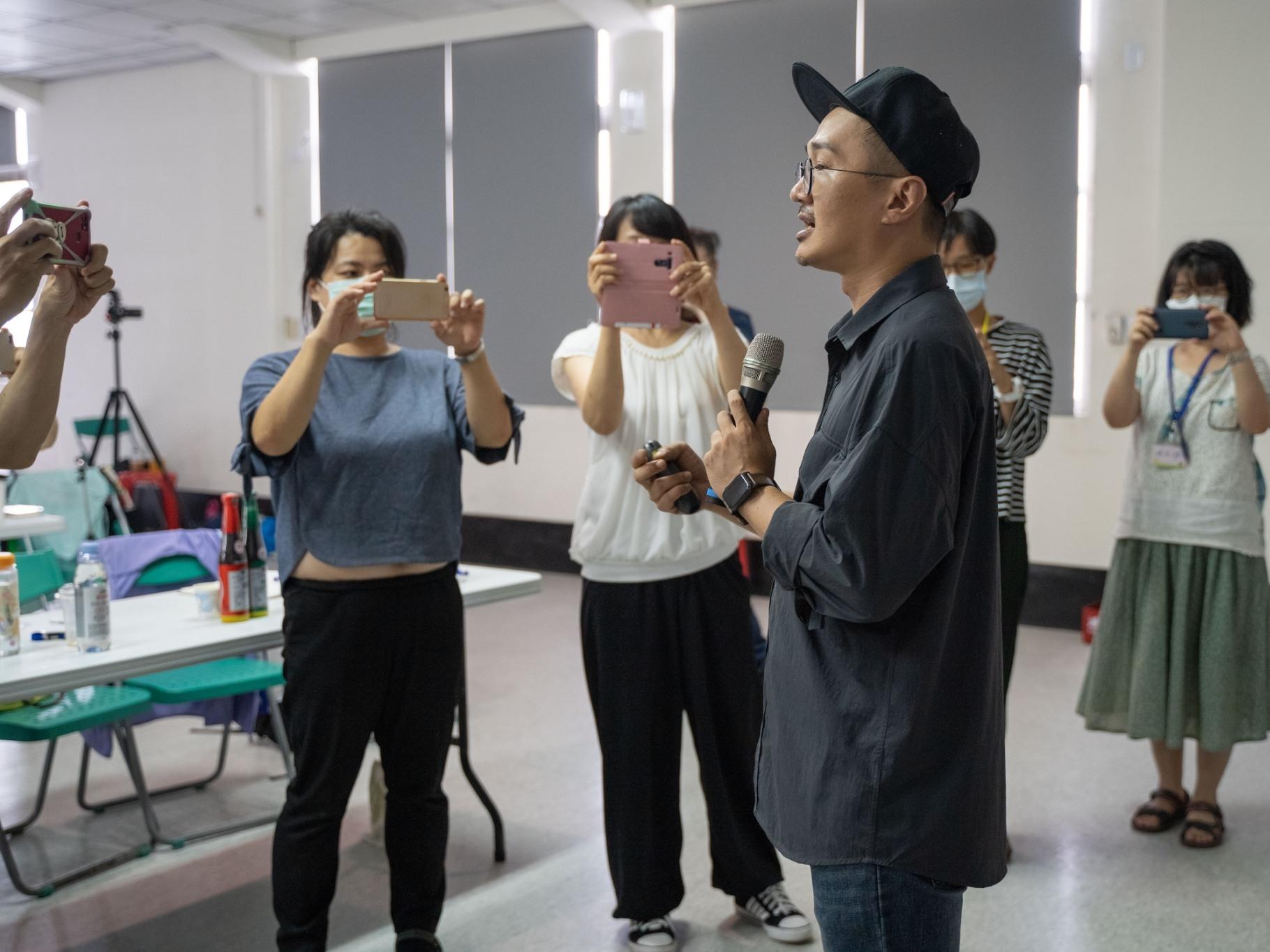 由雲林串樓口社群平台舉辦的「媒體識讀暨自媒體經營訓練」,邀請「貝克大叔」蒞臨指導學員手機拍攝技巧。