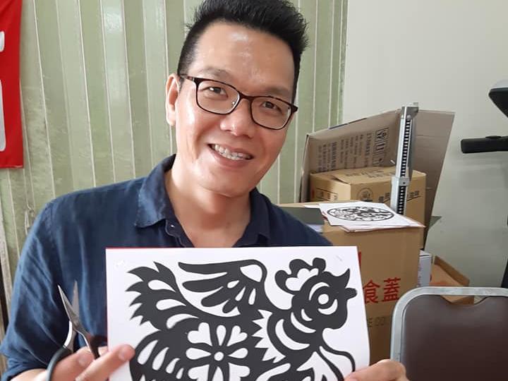 雲林土庫小村畫家張真輔,以自己的創作成為剪紙版型,歡迎大小朋友來體驗
