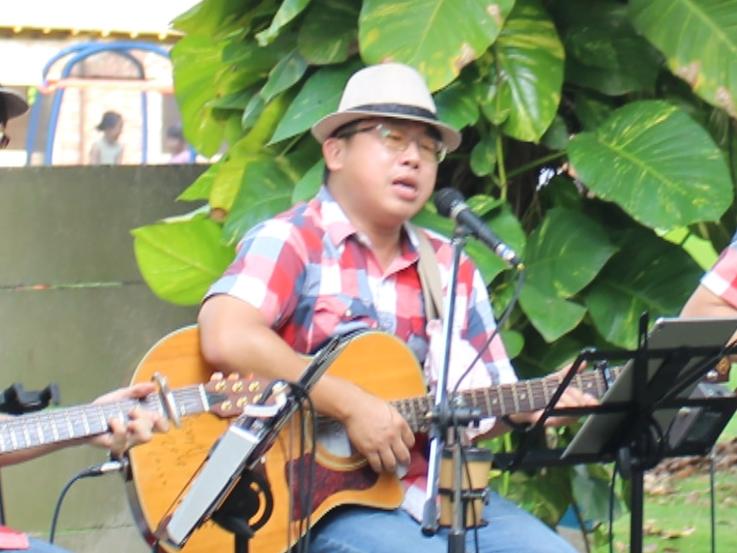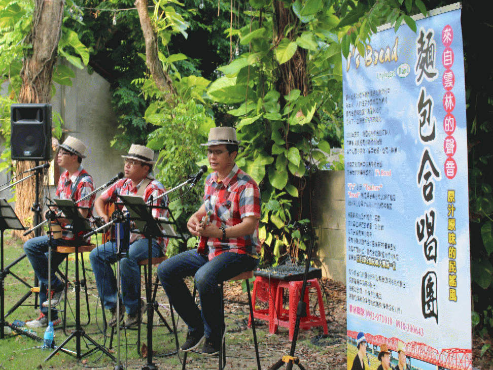 蔡偉凡團長陶醉於歌唱表演中麵包=精神糧食=音樂