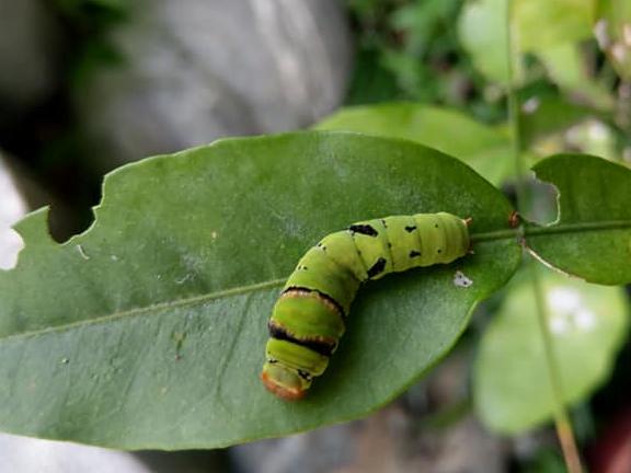 牠們孵化後認真的將我的檸檬葉吃光光。