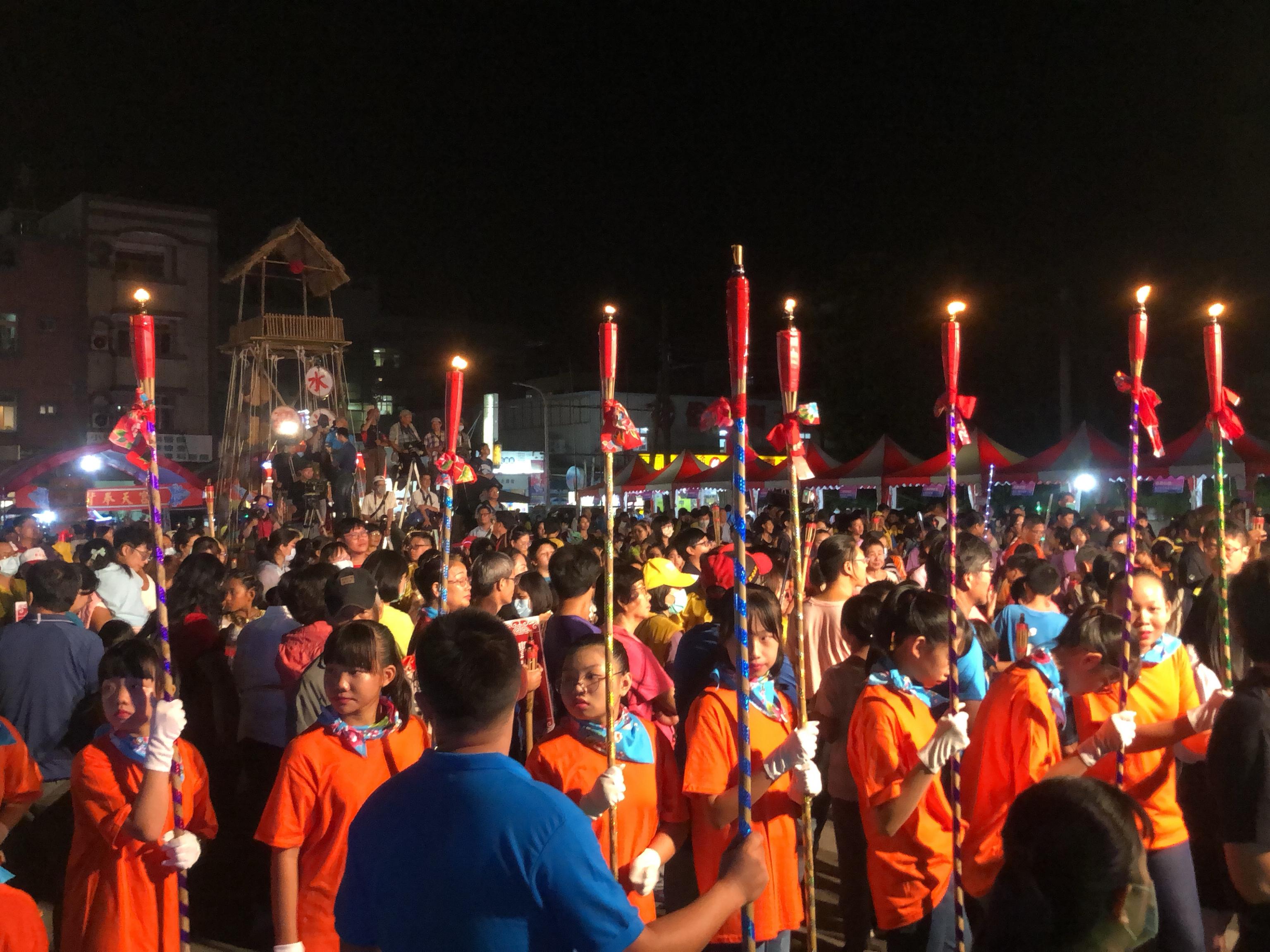 來自各地超過3,600名民眾共同拿著火把遊客庄 -