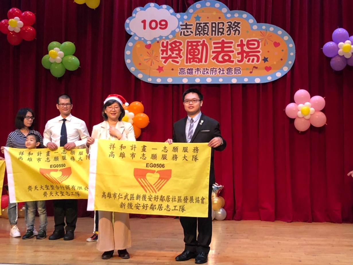 高雄市仁武區新後安好鄰居社區發展協會於去年底成立新後安好鄰居志工隊,如今屆滿一年,於昨(25)日由志工隊督導林彥良先生參與高雄市109年第二次社福類運用單位聯繫會報,並代表接受社會局葉副局長授旗。