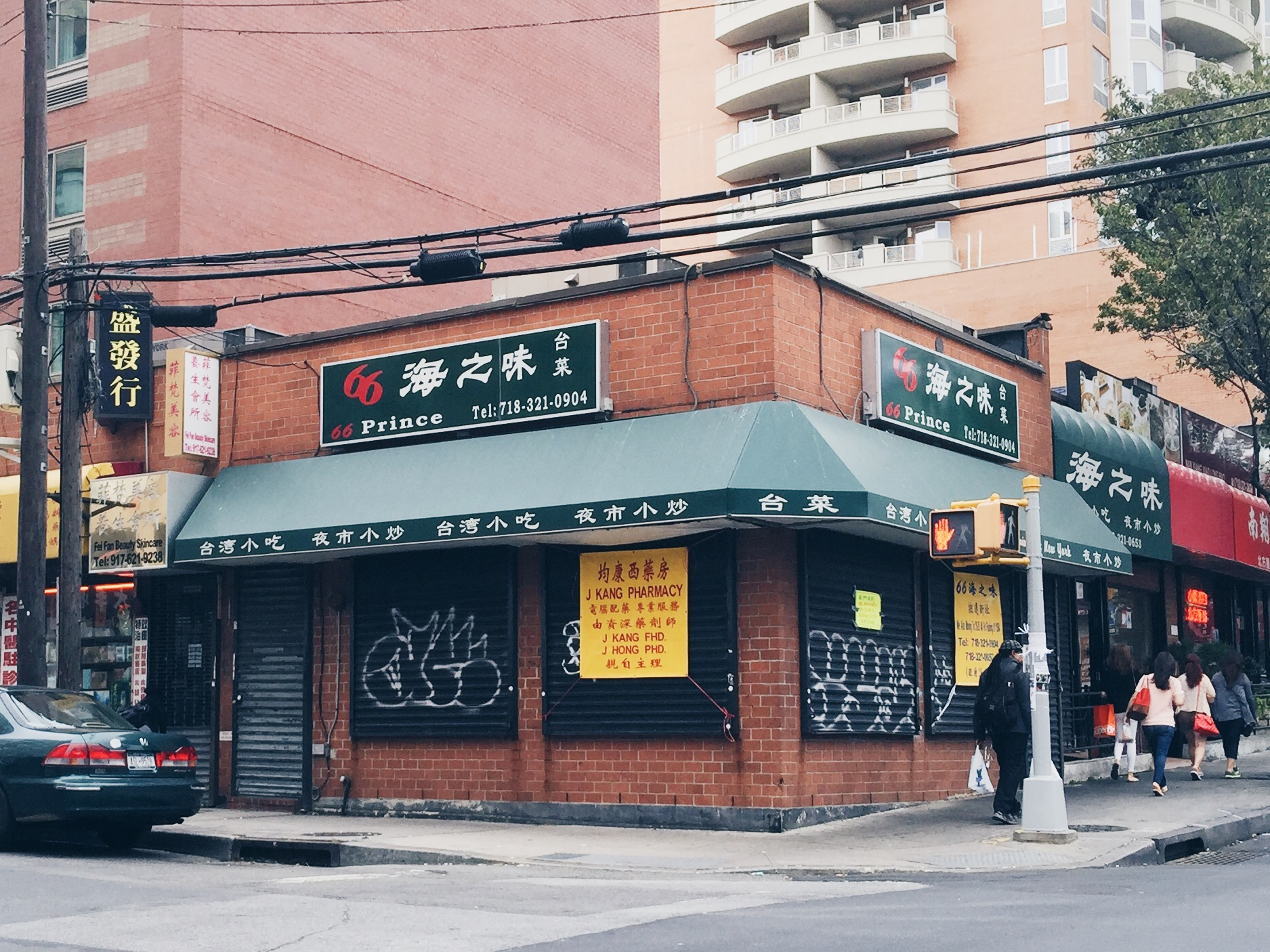早期的法拉盛有「小台北」之稱,是台美斷交後台灣移民潮除了加州以外最熱門的地方。而移民比較容易入門的生存方式就是經營餐館,筆者在二十多年前初到紐約時法拉盛到處是台灣移民所開的餐館,料理也不侷限在台菜而已,四川菜,上海菜應有盡有。姑且不論口味是否道地,總是異鄉遊子懷念家鄉食物的好去處。