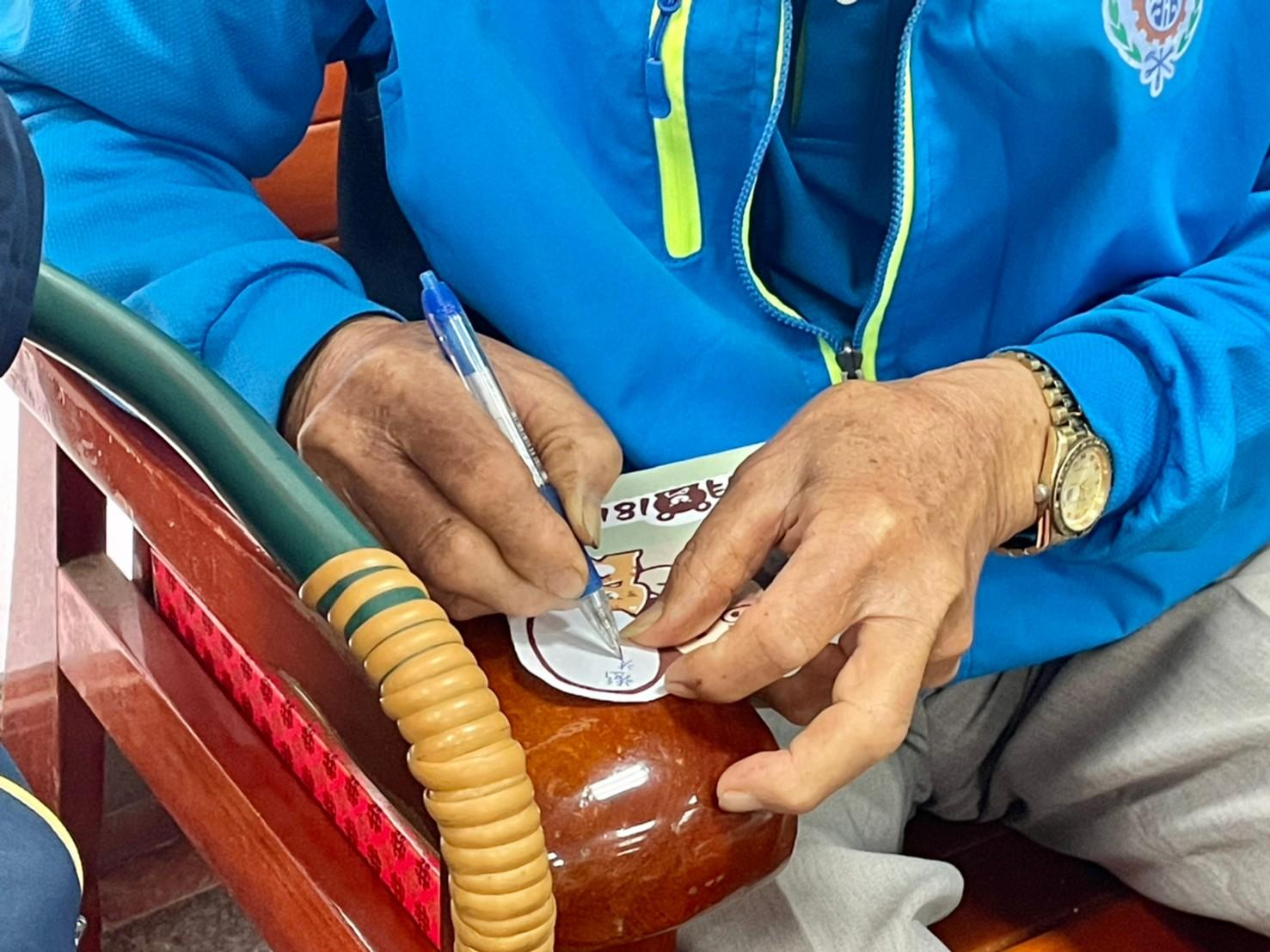 在公投進入白熱化倒數的階段,民進黨澎湖縣黨部今日上午由資深黨員們共同完成「剪紙手作」、一個個可愛的「四個不同意」桌面擺設接力完成,現場大家寫下各自的心願,紛紛提筆寫下「澎湖加油」、「蔡總統加油」、「民主長在」等語,辦公室內格外溫馨,期望透過溫馨的活動為執政團隊送暖鼓勵。