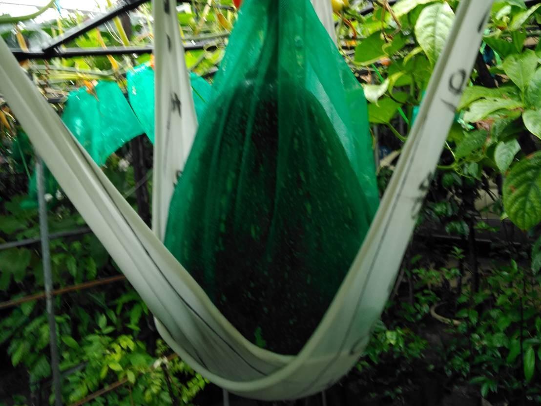 園區內的南瓜睡吊床,還有掛蚊帳,晚上還可以聽樹蛙唱歌,白天看小鳥吵架,非常幸福,帥哥南瓜與美女南瓜今年總共有四十幾顆,已被預約三十三顆。