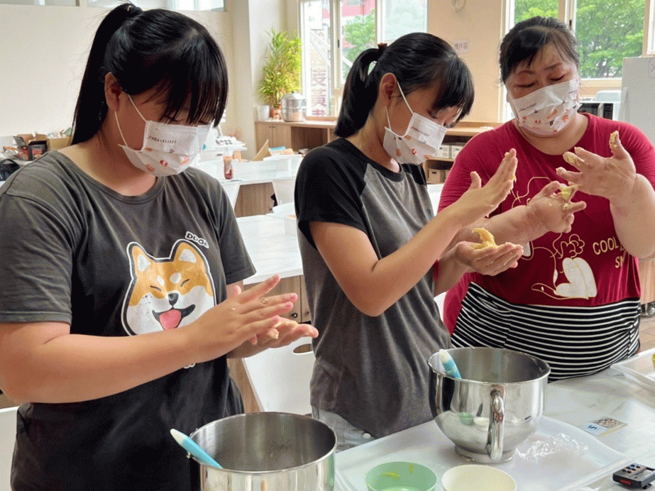 活動當天,大家都相當投入且覺得新鮮有趣,除了認真看老師示範、學習揉麵團、桿油酥皮,包餡料,電子磅秤量食材、使用專業大烤箱等等..,更有照顧者表示這是她人生第一次來到烘焙教室,第一次動手作西點烘焙,並表示除了現場手作、吃自己親手作的月餅、剩下的月餅還可以回家與其他家人分享,有吃有玩,暫時放下照顧工作,稍稍喘息,享受歡樂時光…。 -