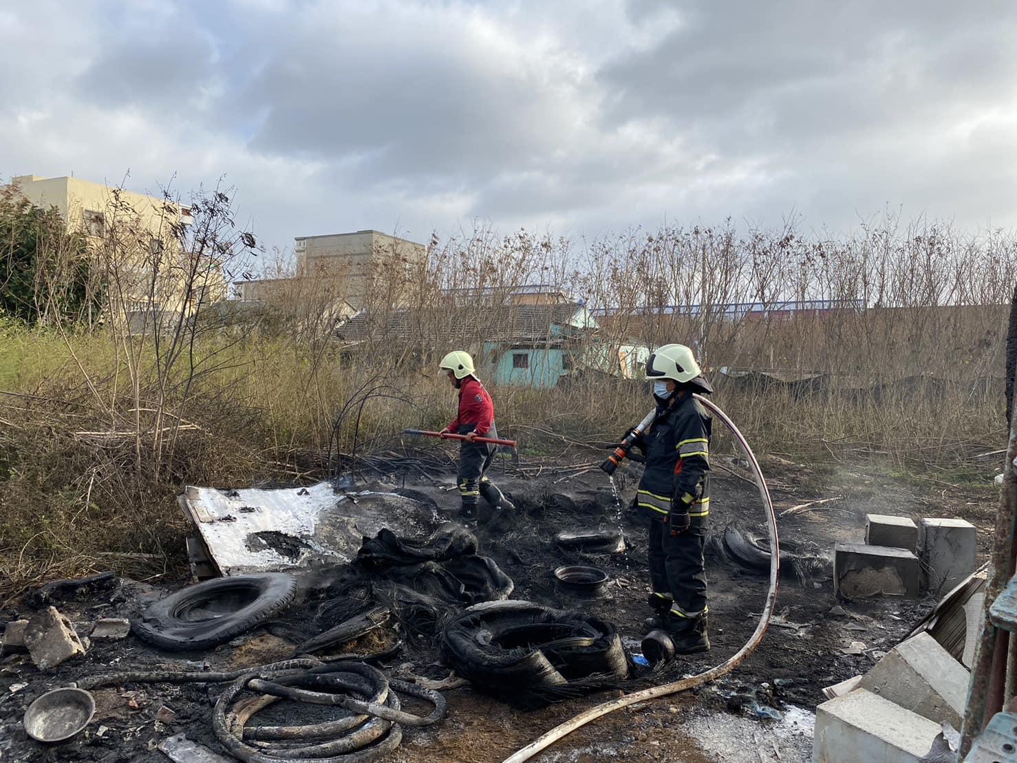 經搶救後,火勢於16時26分完全熄滅,無人員傷亡,燃燒面積約30平方公尺。然因起火處緊靠鐵皮屋,加上風勢強勁助長火勢,除燒毀輪胎等廢棄物外,鐵皮屋牆面亦受波及燒穿。有關起火原因及損失情形,由消防局火災調查人員進行後續調查處理。