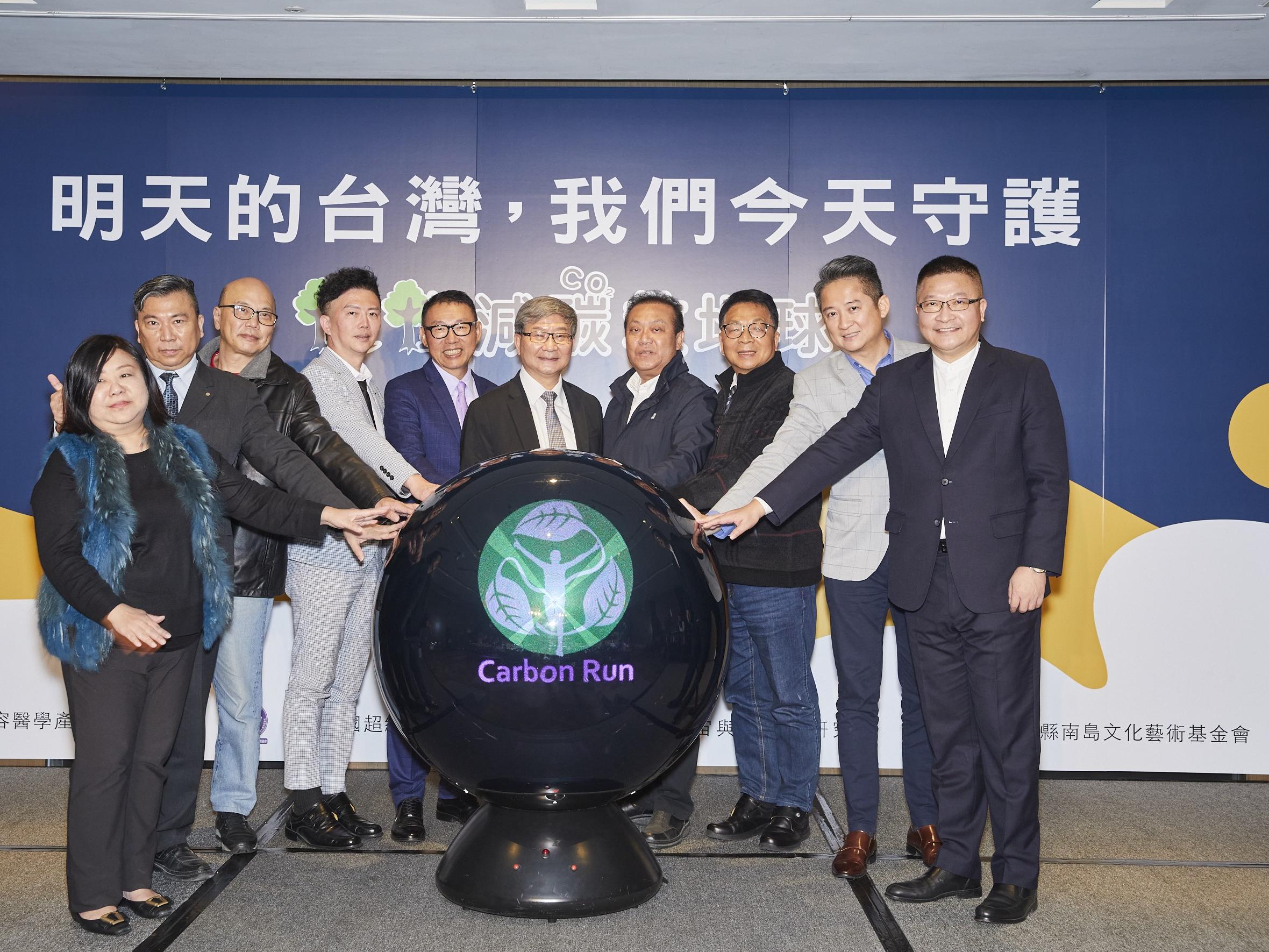 環保署副署長沈志修,立委蘇震清、陳歐珀,超馬協會理事長郭豐州、美容醫學產業全國聯合會理事長蔡豐州、大馬力森林事業董事長李安哲、卓越雜誌董事長鄭玉章、菁鏈科技董事長洪漱芬、Epicor及台灣應用智能系統亞洲區總監洪海兵,以及南島文化藝術基金會董事長高鼎宸共同進行「種樹‧減碳‧救地球」啟動儀式。