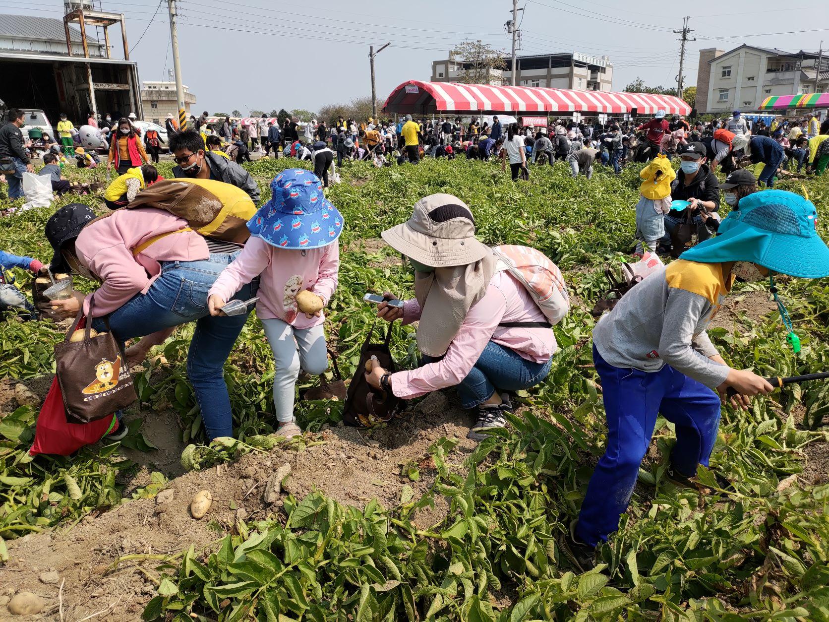 多數民眾較常聽到拔蘿蔔體驗,很少聽到有馬鈴薯採摘體驗活動,馬鈴薯是兩期稻作中間種植的作物,約在1月至3月間,過年後才有採收,機會難得,加上今天風和日麗,適合全家出遊,因此吸引來自各地滿滿的人潮,大朋友小朋友自備工具,頂著太陽在馬鈴薯田裡開開心心的採收馬鈴薯,帶著圓滾飽滿的馬鈴薯滿載而歸,感受難得的體驗活動,度過美好的一天。