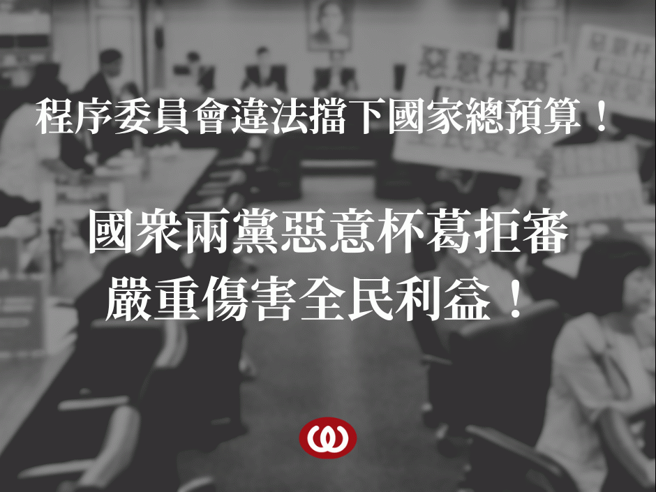 程序委員會違法擋下國家總預算!國眾兩黨惡意杯葛拒審,嚴重傷害全民利益!