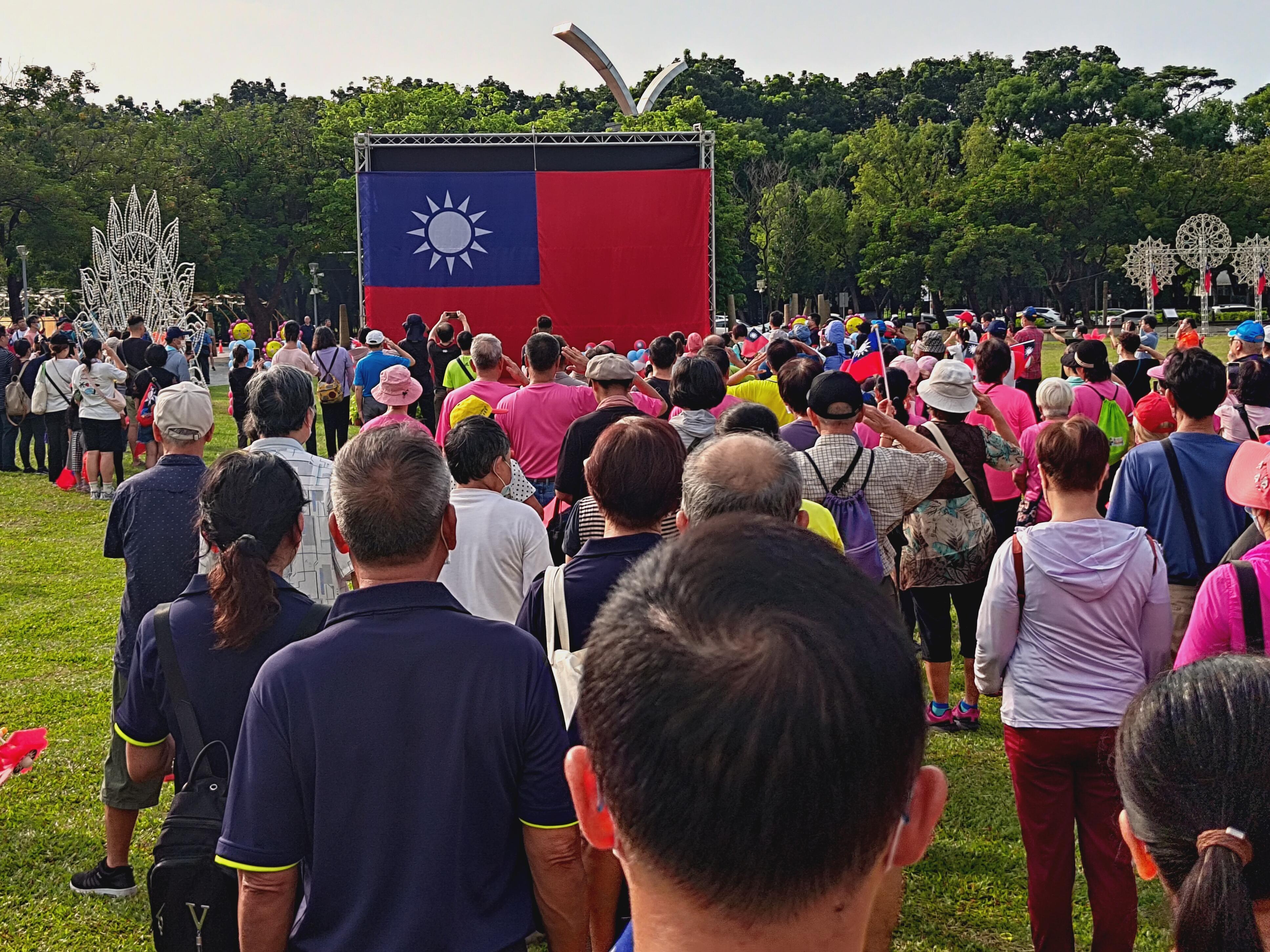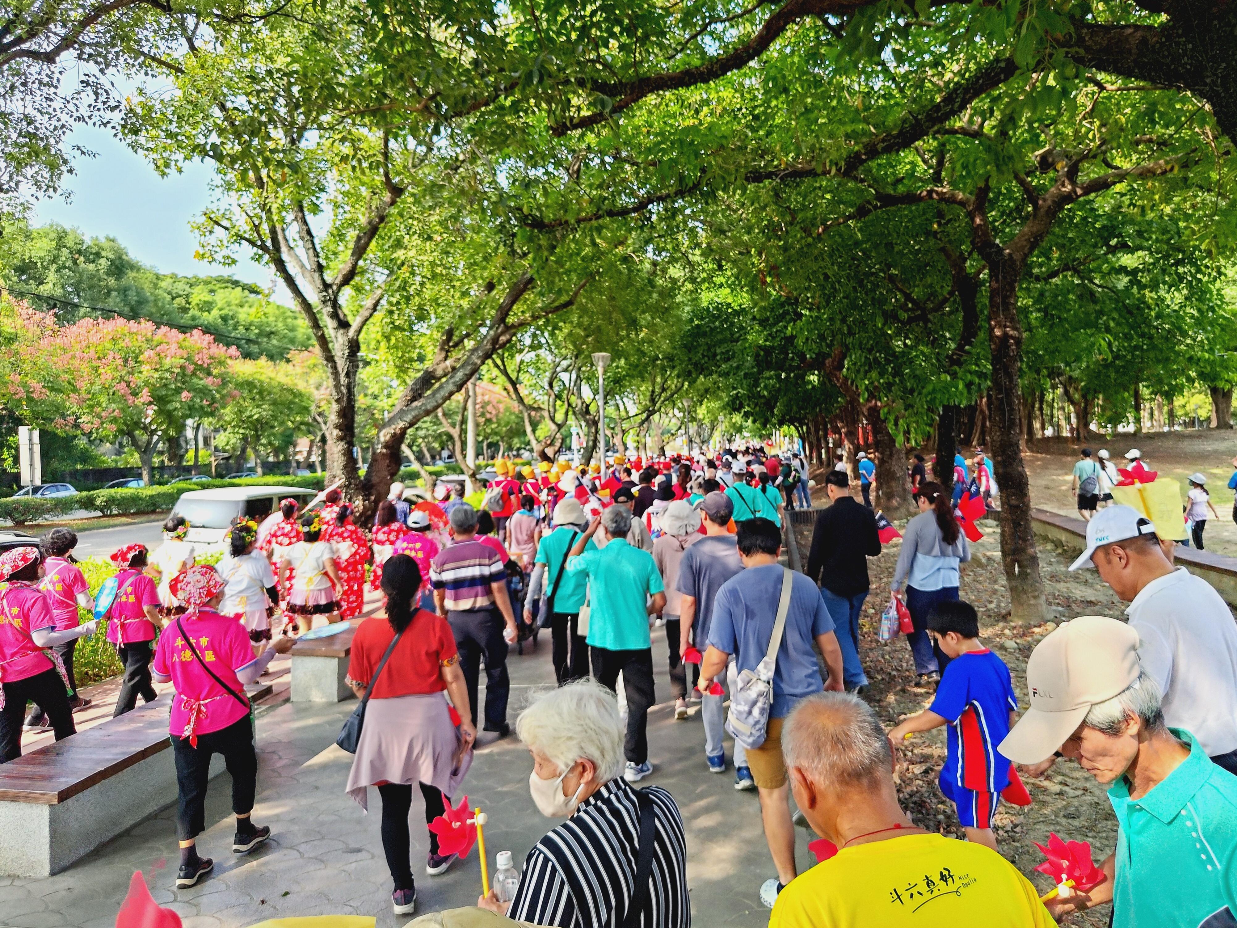 民眾揮舞國旗參與升旗典禮及健走活動,共同慶祝中華民國生日快樂。