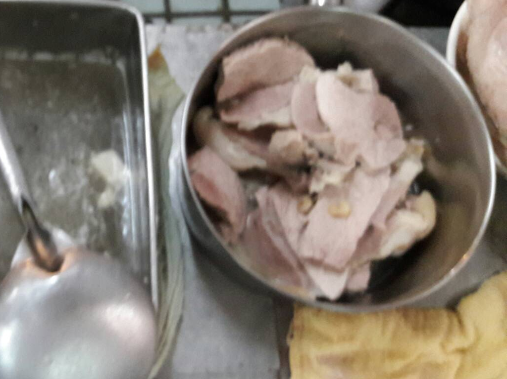 三層肉、瘦肉,以及熬煮豬肉的高湯是吃豬頭飯必備的副食與湯品。 -