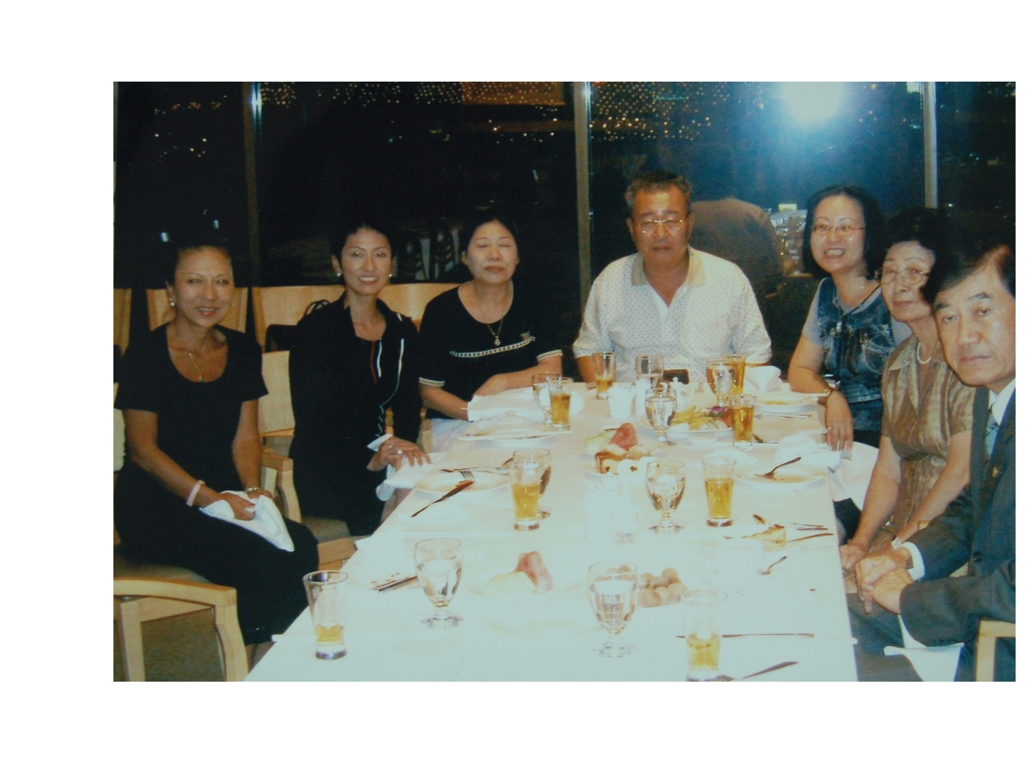 2004年蓮舫(左二)返鄉尋根,由陳唐山(右一)安排,與堂兄謝柏生(左四)等家人相見歡。