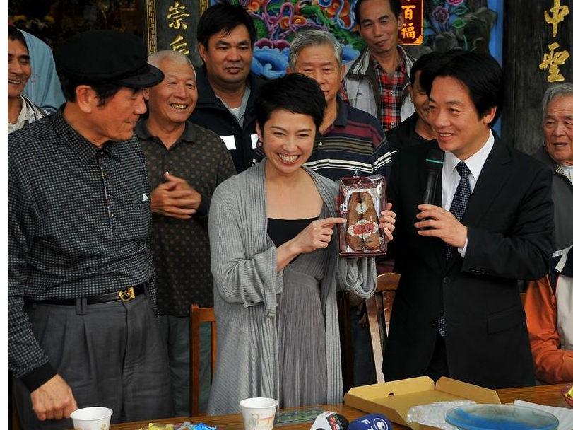 2013年蓮舫(中)再度返鄉走訪白河區,台南市長賴清德(右一)譽為「台南之光」