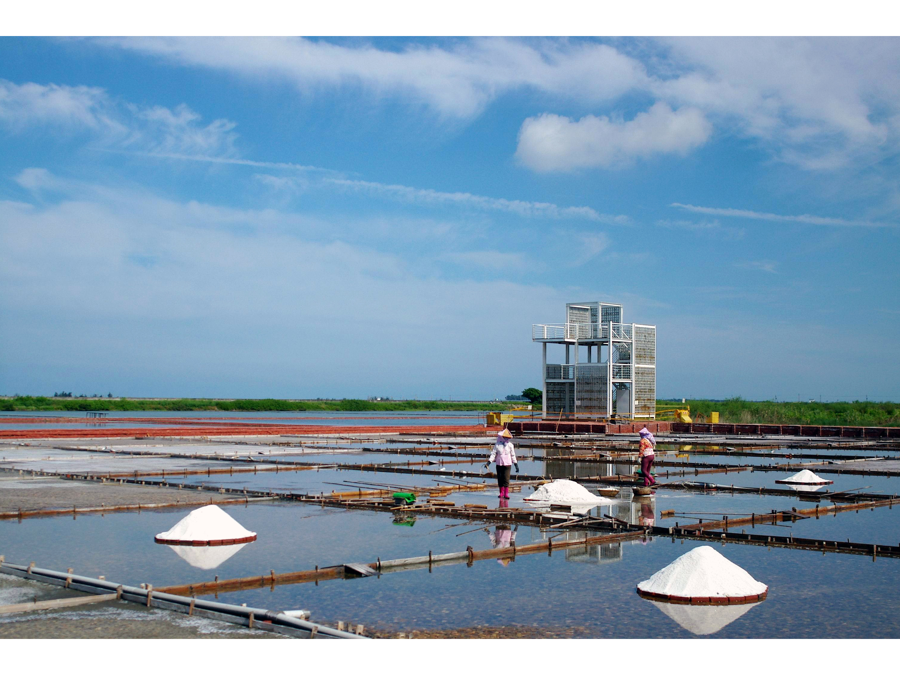 梅姬颱風來襲前夕,台南市北門區井仔腳人工曬鹽場趕緊收鹽,以免心血泡湯。