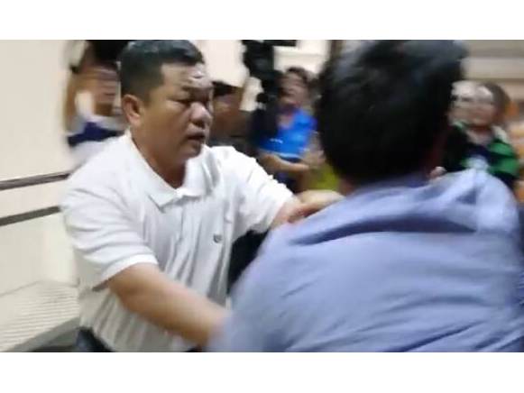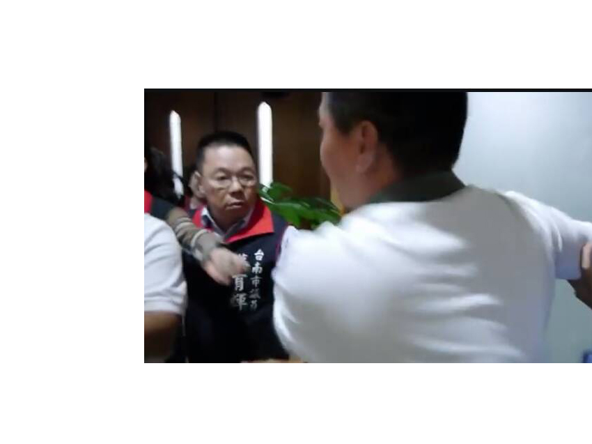 台南市議會召開臨時補選議長不成,演變成全武行,藍營議員蔡育輝與綠營爆拉扯衝突。