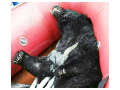 拉庫拉庫溪發現的漂流熊,體型小,左掌因人為因素斷了。