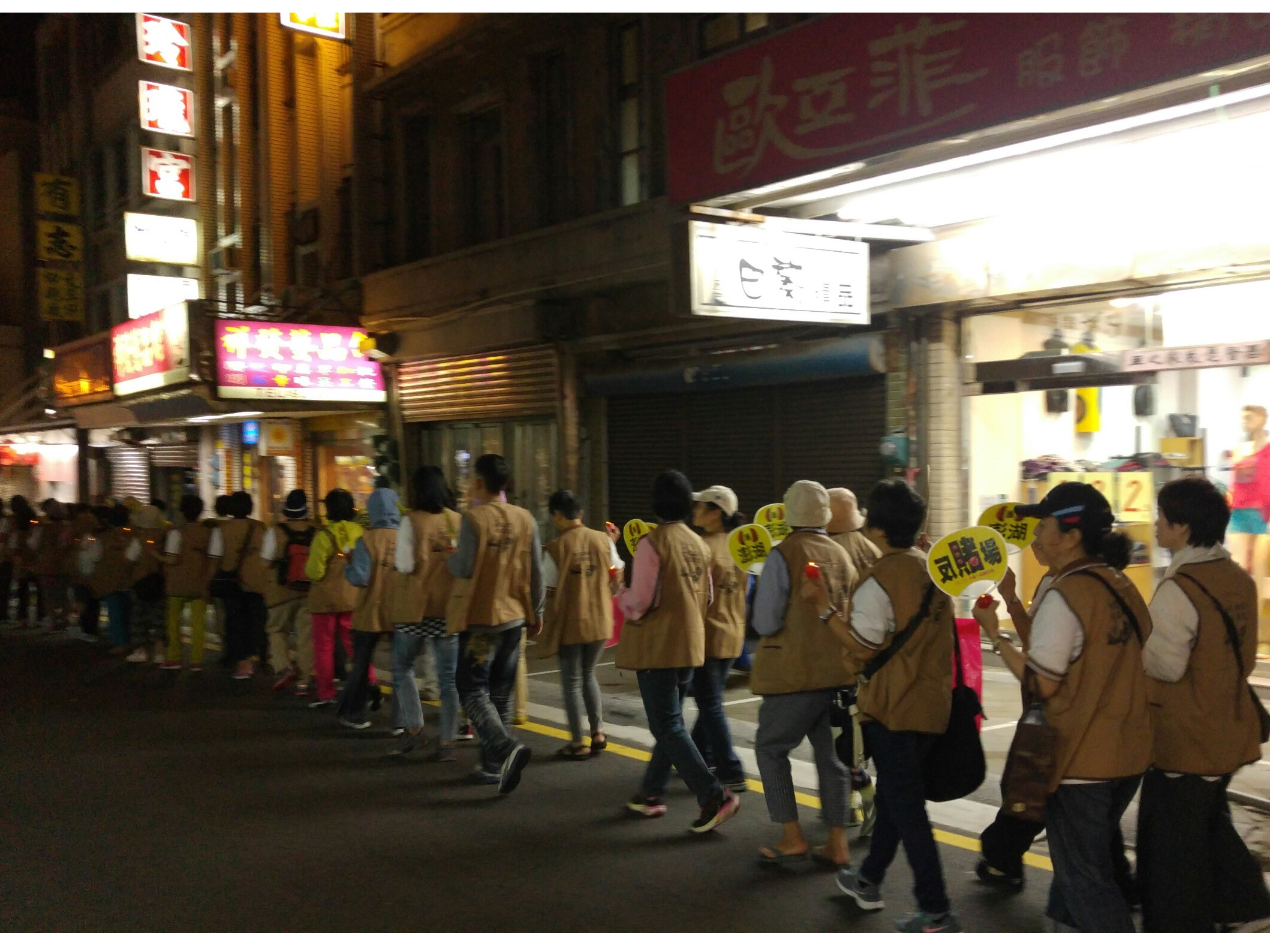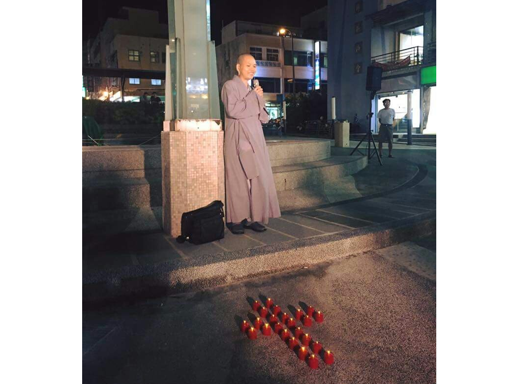 10/11日晚上,兩群人分別從澎湖妙雲講堂和基督教教會,約150人行走至菊島之心,一路上隊伍每人手持蠟燭,踏著堅定安靜地步伐,只為了向澎湖鄉親宣傳反對博弈公投的訴求。
