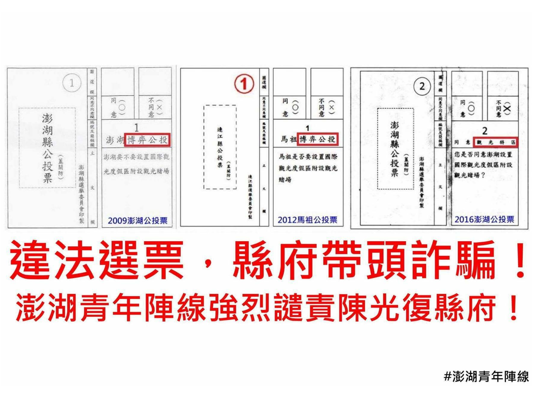 澎湖青年陣線認為此舉顯然偏向促賭方,是「違法公投」,而且設置觀光特區根本不需要公投,設置賭場才要。