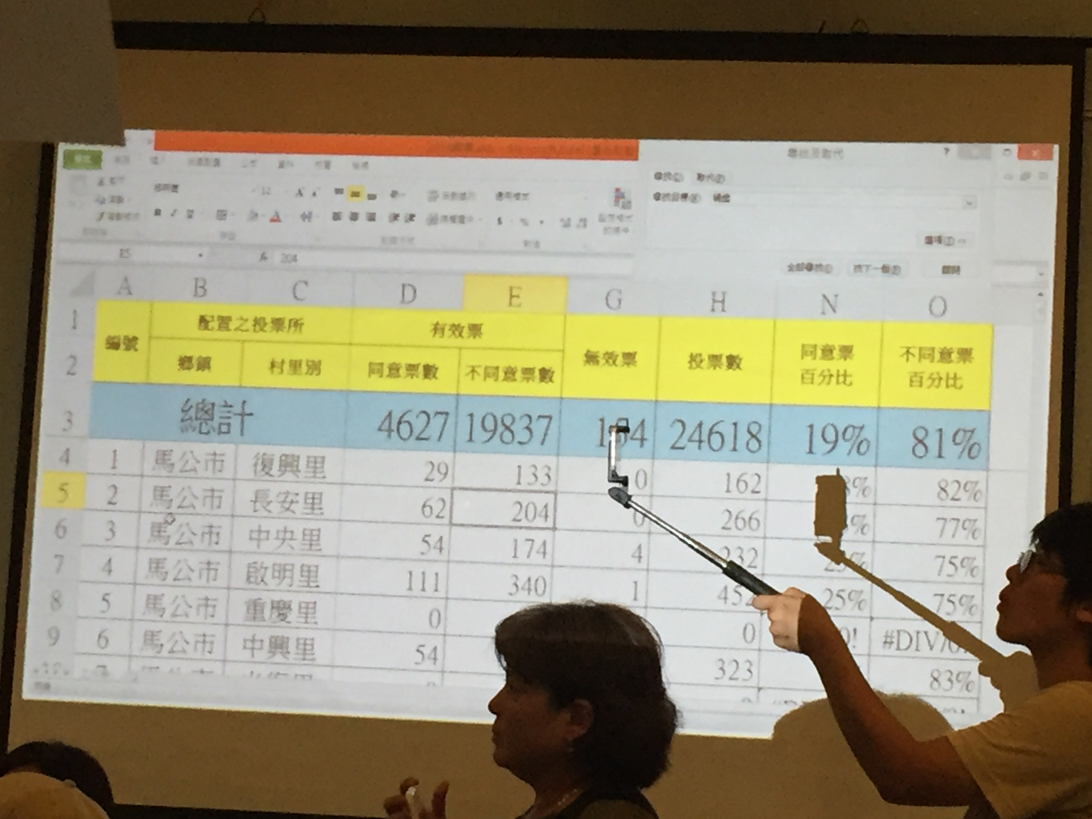 本次公投96個投開票所中,只有2個投開票所是同意票大於不同意,分別為西嶼鄉二坎村、望安鄉東吉村。