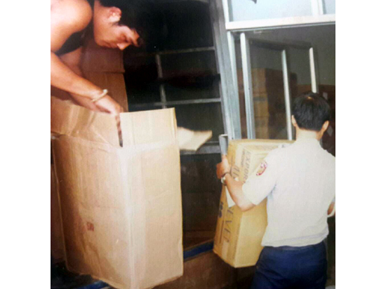 查獲走私洋煙,公賣局與警方人員搬運清點。 -