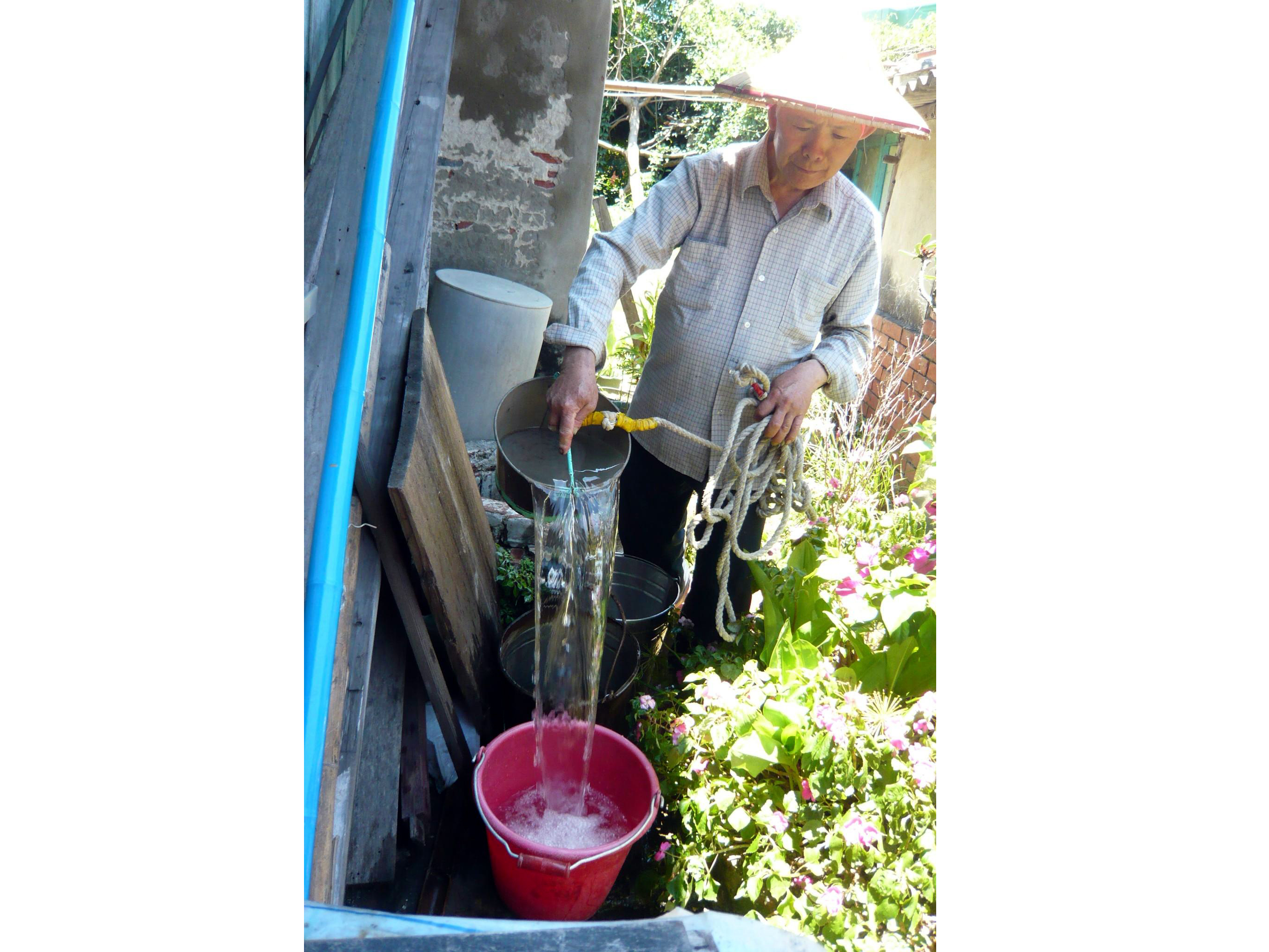 李一男為百年泉利鐵店汲取午時水,做為一整年磨刀水