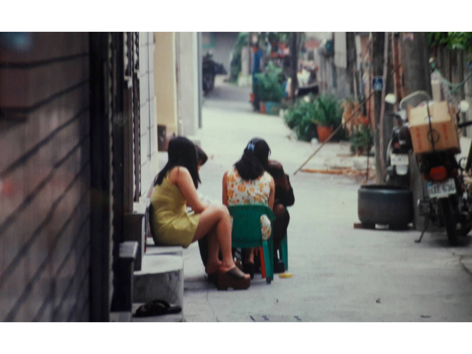 早年陋巷內的有照娼寮,女服務生在巷子圍坐乘涼。