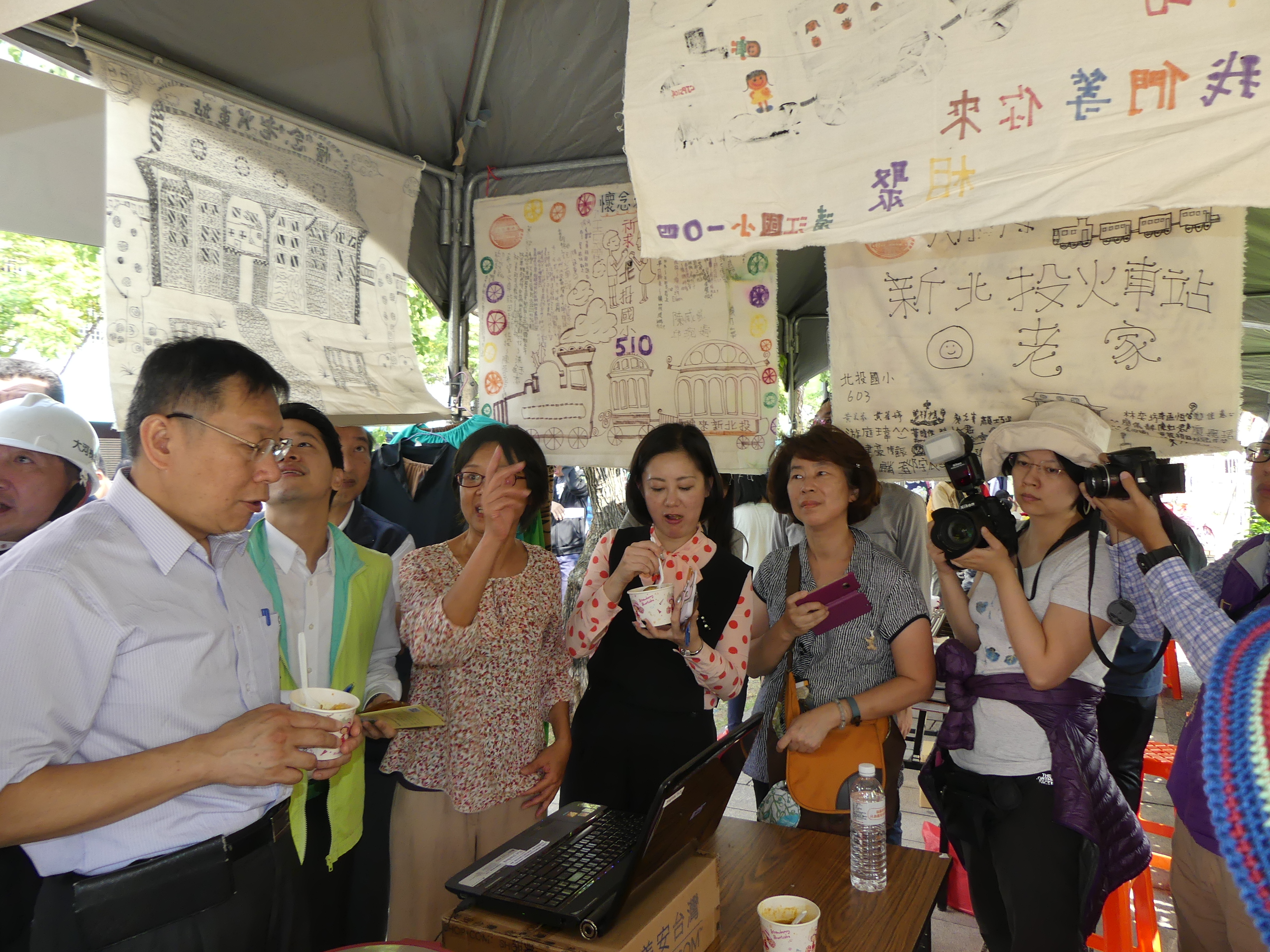 八頭里仁協會在北投21 年,2016/11/05 還在北投風光的參與火車站的上樑典禮,也在嘉年華活動擺了兩個攤位,柯文哲市長還特別駐足許久,看十二年前北投小朋友表達對火車站期待的圖畫。我習慣冷眼旁觀,很敏感的感覺到現任理事長心中有口難言的痛。