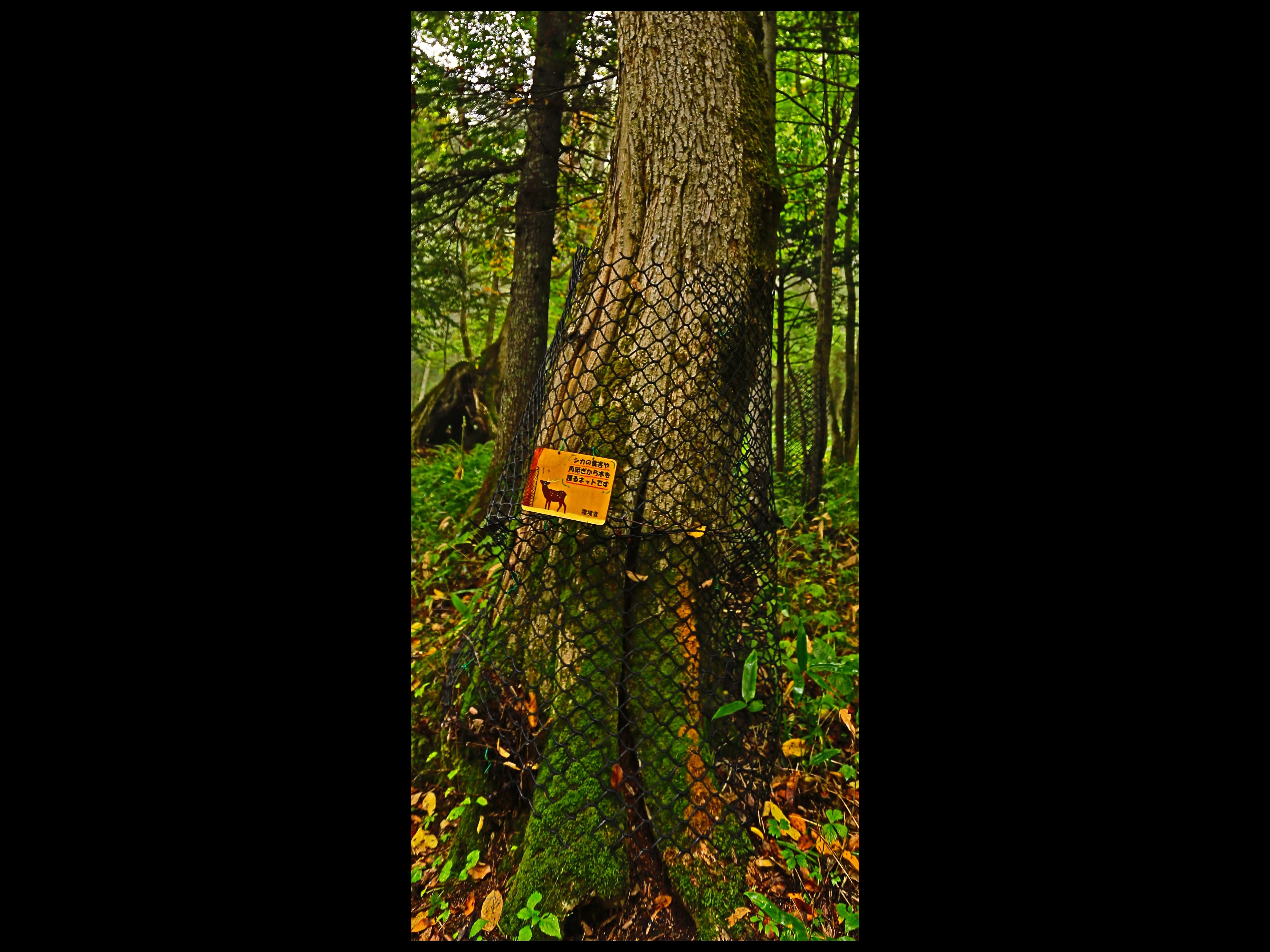 鹿為害森林樹木,不是只有台灣。日本北海道產鹿,鹿會啃咬樹皮,在樹幹上磨身,把樹皮磨掉了,往往導致大樹枯死。日本人用塑膠網把樹身下半截圈起來,保護大樹。