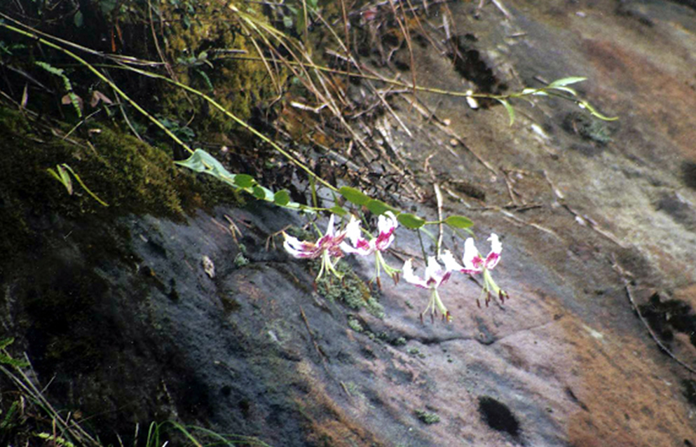 gloriosoides),被當地人稱為「天使的翅膀」、「峭壁的精靈」,由於被稱為具有治療皮膚病、帶狀庖疹的藥用植物,過去一直被人為破壞和過度採擷,面臨絕種的危機,因此也被「國際自然及自然資源保育聯盟(IUCN)」列為世界嚴重瀕臨絕滅的珍貴植物。平溪原生的豔紅鹿子百合不僅是臺灣國寶級的植物,也是世界珍貴的稀有植物。
