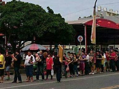捧著神尊前來鑑醮的人龍排成長長百餘公尺,此一部分廟方將申請金氏世界紀錄