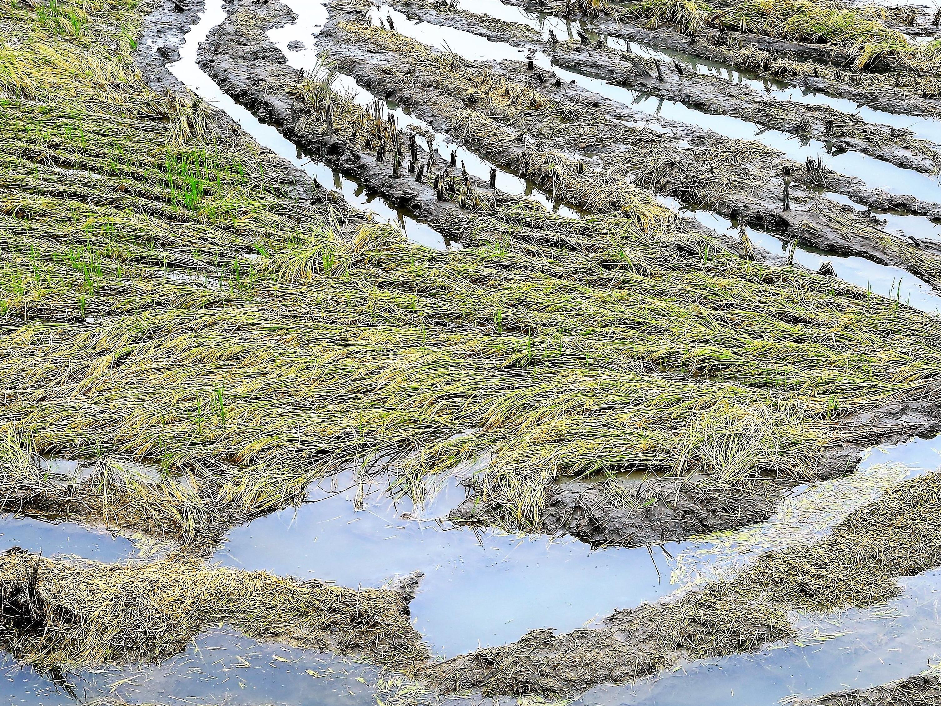先前,農民以為先期插秧的,抽穗、開花期,遇到連續颱風大雨,不稔、空包、倒伏發芽的很多。較慢插秧的逃過當時風雨,情況稍好。沒想到他們這幾天要收割,鋒面卻帶來連日風雨,田裡水稻比先前的更糟糕,整串稻穗黑掉,乾枯、倒伏,田裡情況十分嚴重。