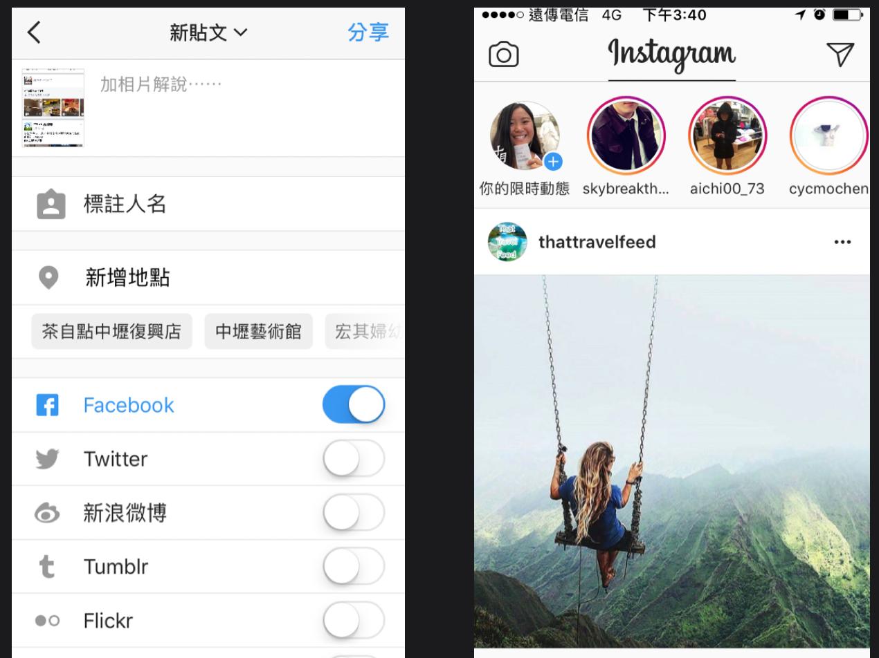 剛開始我還非常鐵齒的連IG都不想下載,但是到最後,我的手機裡除了中國常用的微博、QQ、最後連台灣人根本沒在用的 Teitter 也收進App倉庫,以備不時之需,其實,對於社群軟體經營來到美國之後反而有了長足的進步,可能是因為 FB 比起在台灣更少的關係,更加注重朋友間的貼文,但是為了部分只使用 FB 的家人,我乾脆直接從 IG 連動 FB,如此一來就能夠兼顧美國尚聯繫的朋友了。