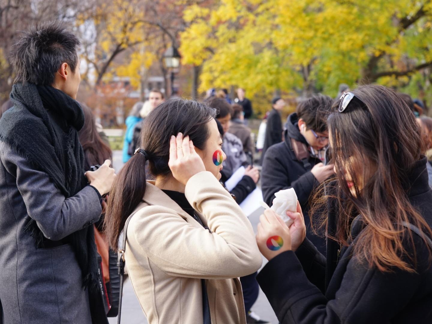 有台灣形狀的彩虹紋身貼紙十分搶手!這項「海外台灣人支持修正民法,力挺婚姻平權」全球串連聲援活動12月2日從華盛頓DC開跑,目前共有六個國家,二十二個城市參與,直到12月10號「世界人權日」為止,讓在台灣支持修正民法的人聽到海外支持的聲音。 -