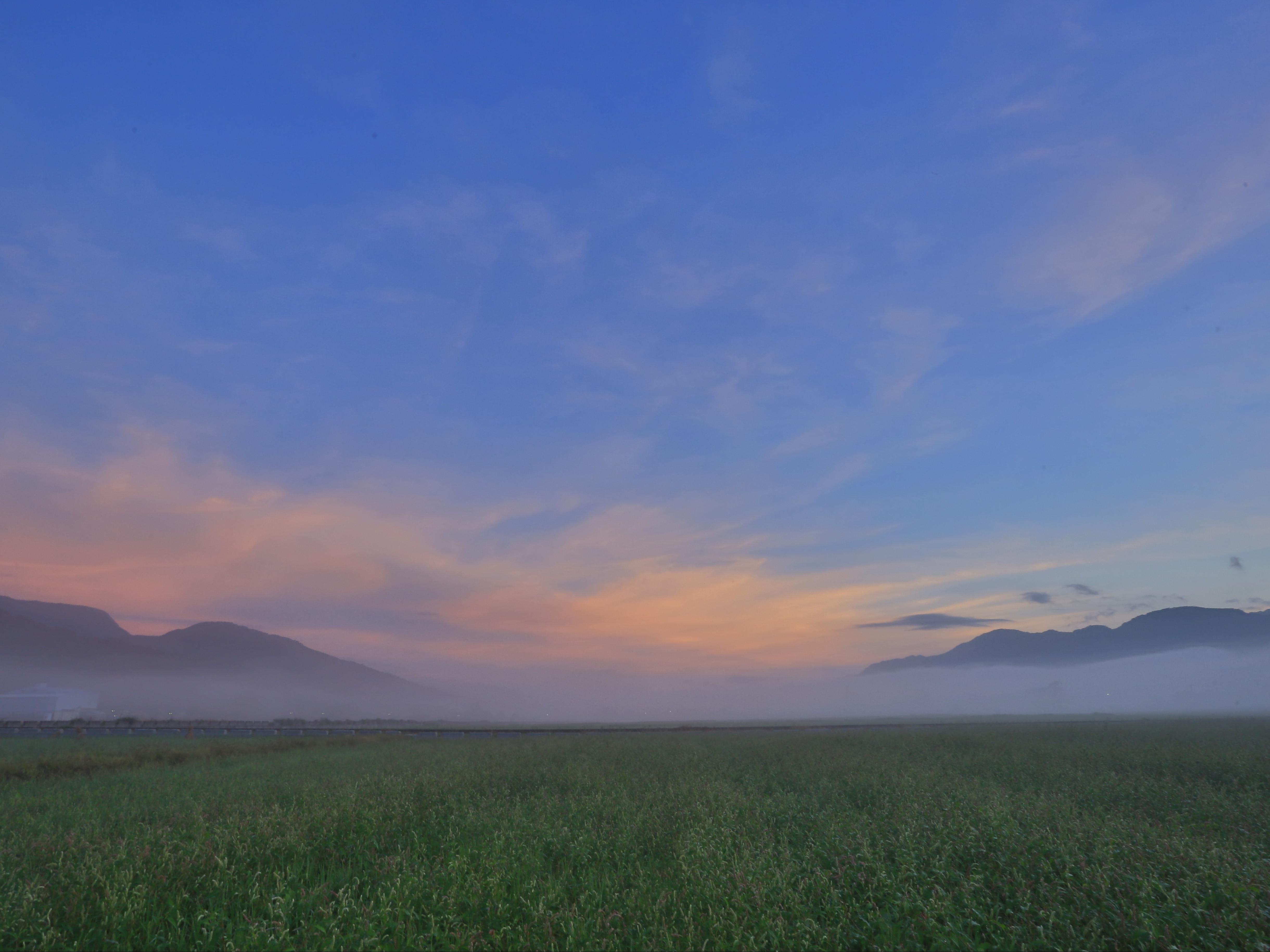 花東縱谷今天五點就被濃霧所罩,早起的民眾看到霧夜街燈,矇矇矓矓的;六點多霧稍為散開,接著烏雲移來,太陽就出不來。