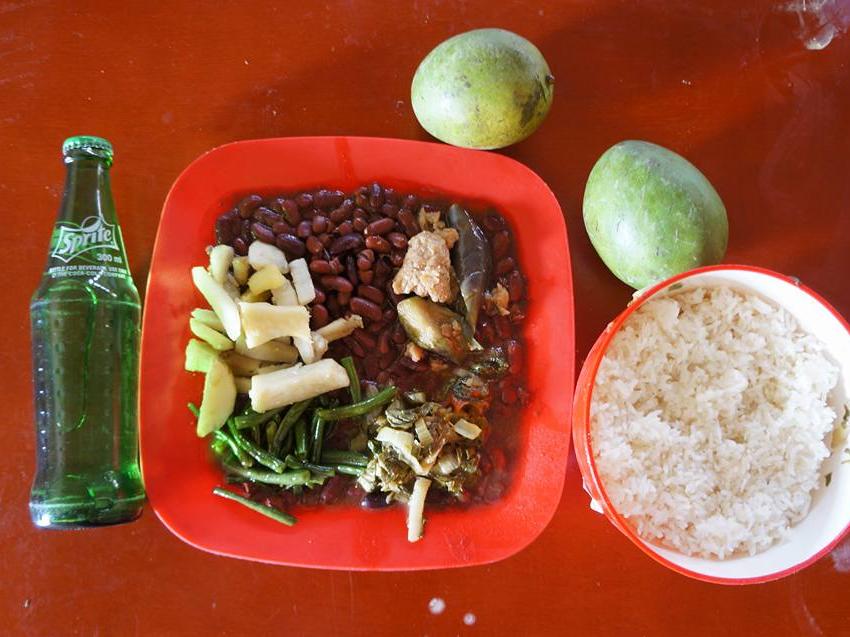 We did some changes. Tomatoes, eggs and potatoes are expensive, instead we offered rice, beans, 4 kinds of vegetable, Taiwanese chips made from sweat potatoes, and soft drinks.」