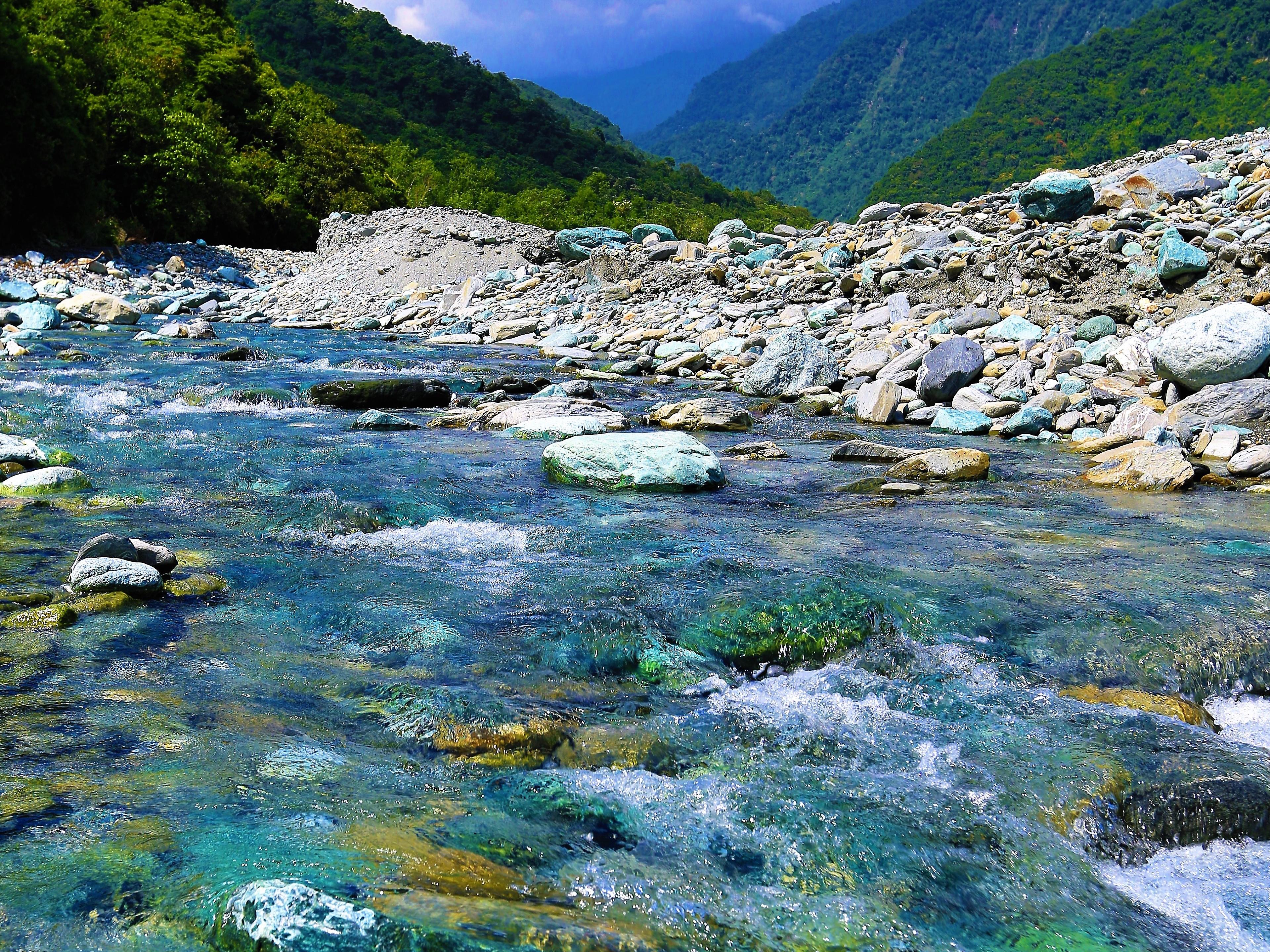 這個在花蓮縣中央山脈山腳下的綠水秘境,水是匯集山區流泉而成,山中流水色澤湛藍,曲流到了某個河段,藍色溪中現出點點的碧綠光芒,相當奇特,在其他溪流很少見到。