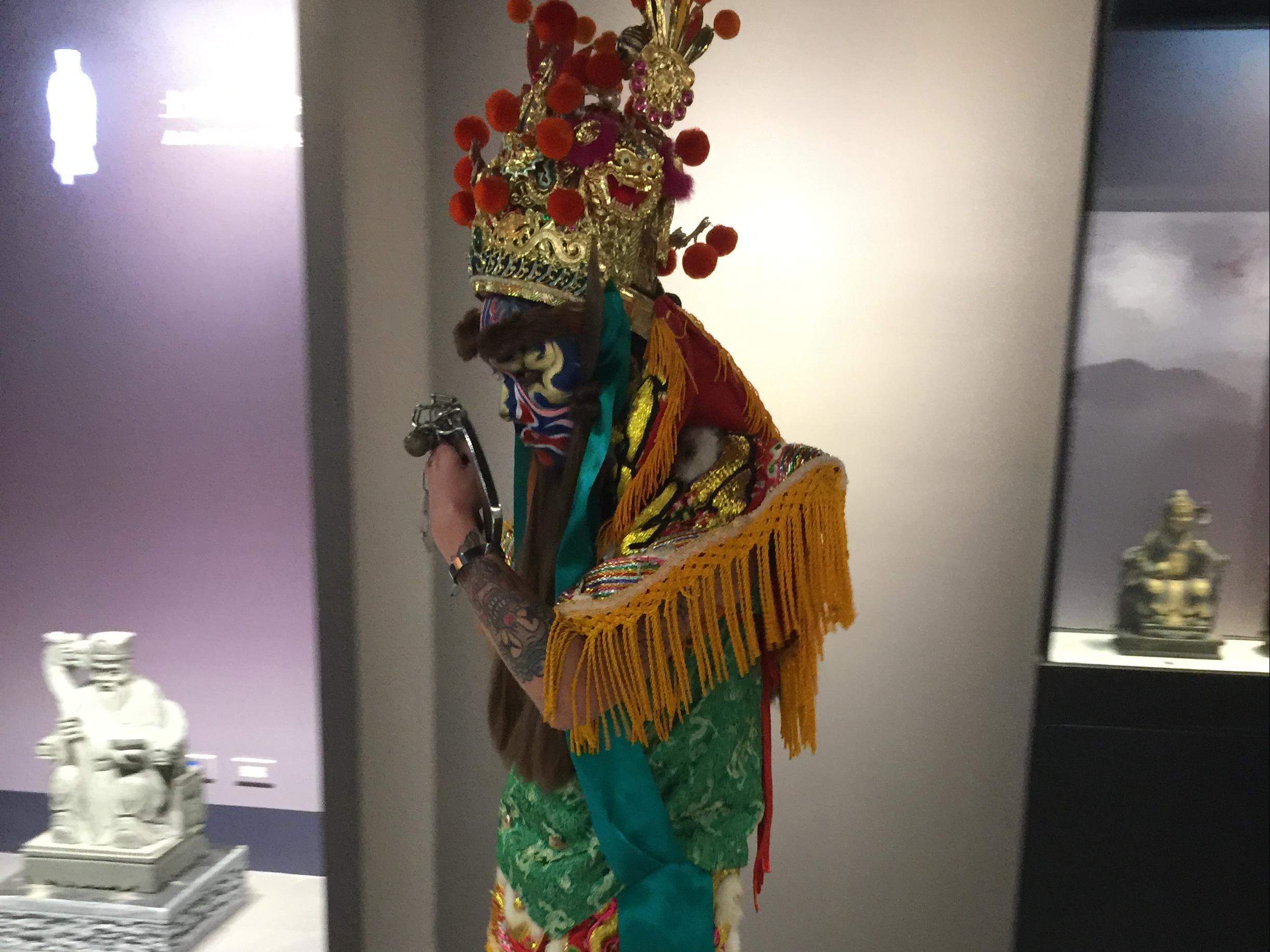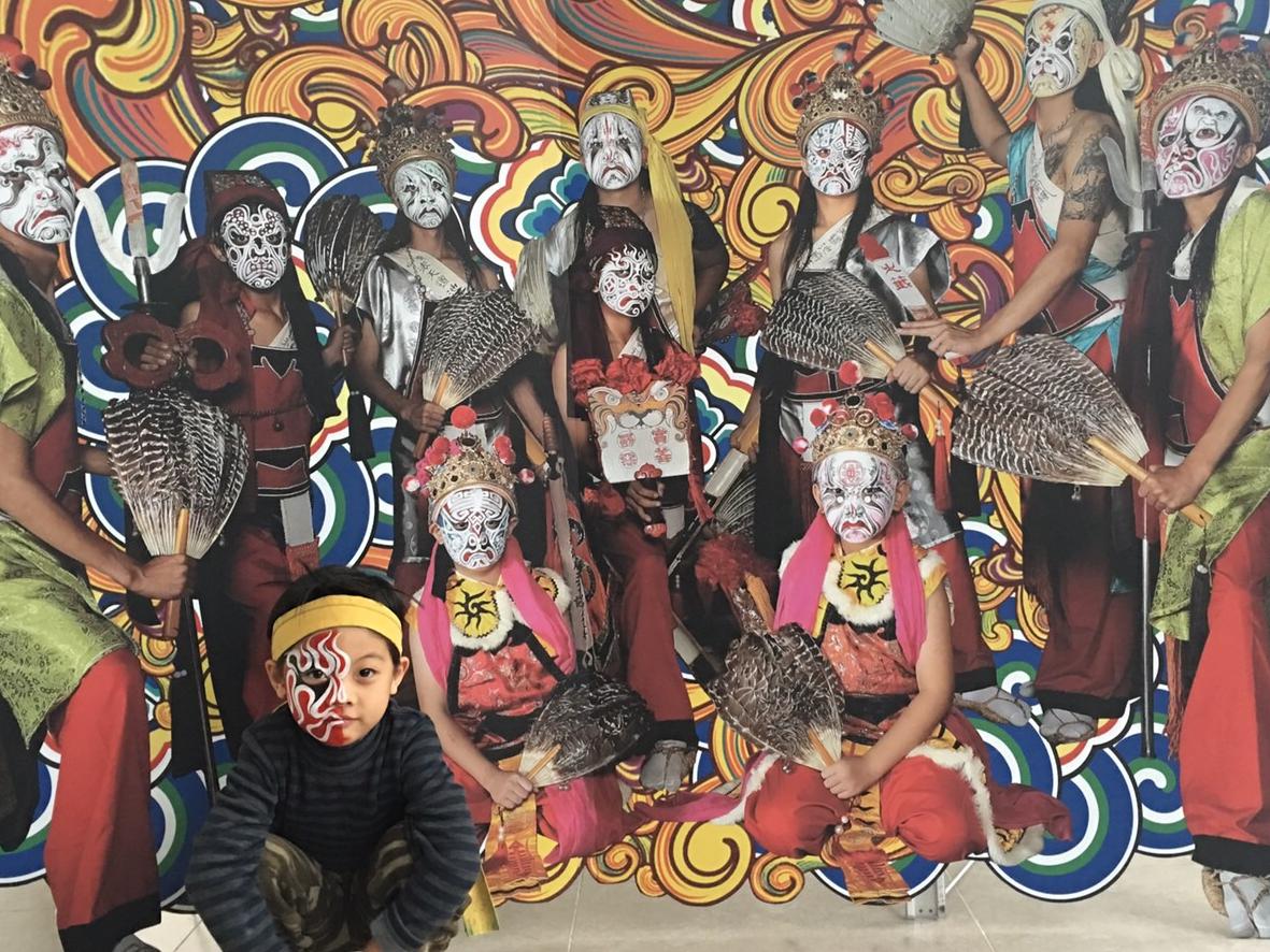 圖文提供/桃園市文化基金會。桃園市土地公文化館新年度第一檔展覽:傳藝大逗陣之面譜藝術於今日開展。現場除了參觀民眾之外,居然也出現了官將首前來快閃逗陣熱鬧。